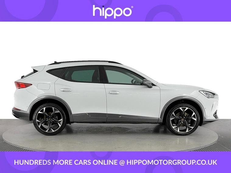 Hippo Approved is known for a wide selection of vehicles suited for various needs and budgets. Each car undergoes a rigorous 130-point quality and safety inspection at our state-of-the-art 3 million preparation centre, ensuring your peace of mind. Additionally, we offer tailored finance packages for personal and business use, making it easy to acquire your ideal car. Presenting the CUPRA Formentor 1.5 TSI V2 SUV, a striking and dynamic vehicle designed to offer exhilarating performance and practicality. With a mileage of just 12, 858 miles, this SUV has been meticulously maintained, receiving its last service on 19th April 2024 at 8, 727 miles. The Formentor is finished in a sophisticated Nevada White, complemented by 19-inch Exclusive Machined Sport alloy wheels in a matte black and silver finish, exuding a sporty yet refined presence on the road. Featuring park assist with both front and rear sensors, this vehicle ensures ease of parking and manoeuvring in tight spaces. This Euro 6 compliant SUV, with a manual petrol engine producing 150 ps, combines efficiency with a smooth driving experience. Contact us today to arrange a viewing and see how this exceptional vehicle can meet your needs.