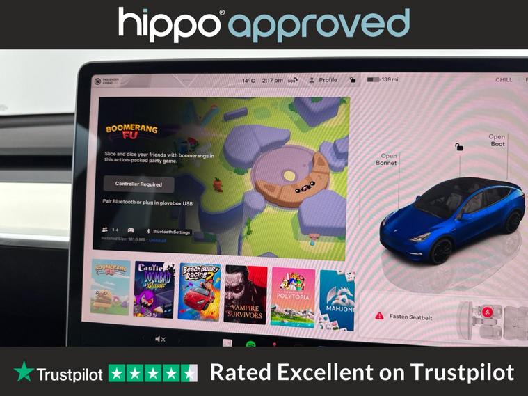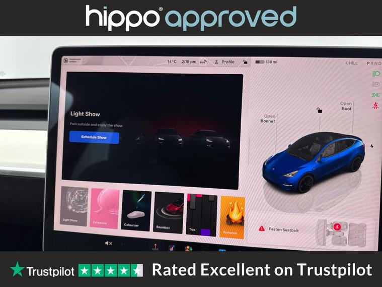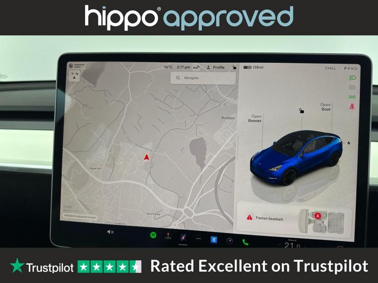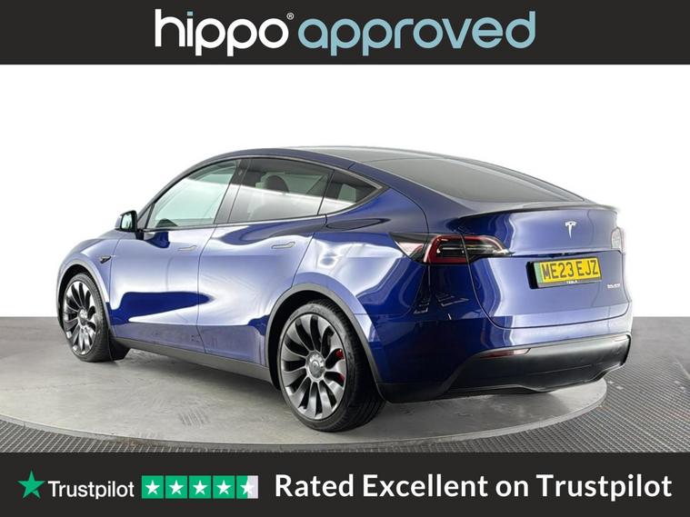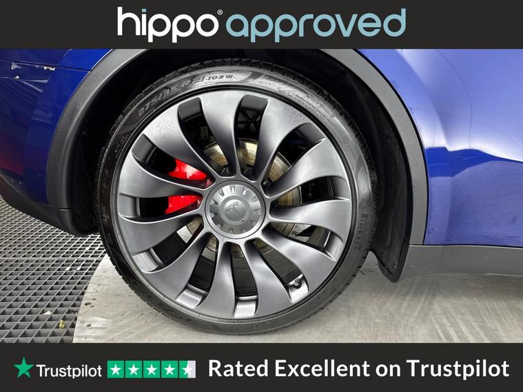 Presenting this Tesla Model Y (Dual Motor) Performance SUV 5dr Electric Auto 4WDE, finished in striking Deep Blue with 42, 900 miles recorded. This high-performance SUV delivers 426 bhp through its all-wheel drive electric powertrain, offering both dynamic capability and efficiency. Noteworthy features include a factory-fitted tow hitch for extended practicality and 21-inch Uberturbine alloy wheels, enhancing both the vehicles presence and handling. The spacious five-door configuration ensures comfort and versatility, catering to family needs as well as business or leisure pursuits. Hippo Approved is known for a wide selection of vehicles suited for various needs and budgets. Each car undergoes a rigorous 130-point quality and safety inspection at our state-of-the-art 3 million preparation centre, ensuring your peace of mind. Additionally, we offer tailored finance packages for personal and business use, making it easy to acquire your ideal car.