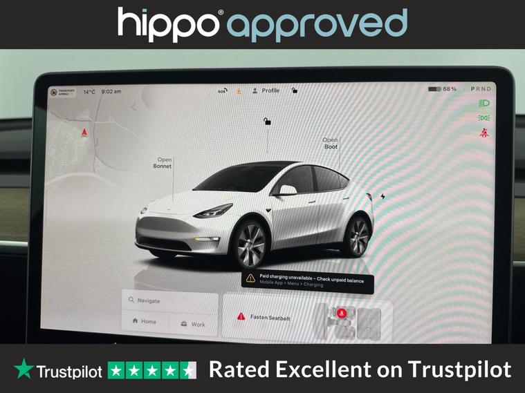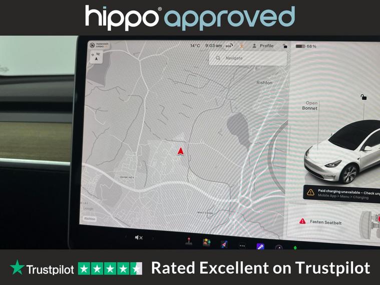Presenting this Tesla Model Y Dual Motor Long Range SUV 5dr Electric Auto 4WDE, finished in a stylish Pearl White. With a mileage of 34, 903 miles, this fully electric vehicle offers impressive efficiency and all-wheel drive capability, supported by 384 bhp for smooth and responsive driving. The interior is equipped with heated front seats, ensuring enhanced comfort during colder days. Built with practicality in mind, the spacious SUV design allows for ample passenger and storage space, ideal for both daily commuting and family use. Hippo Approved is known for a wide selection of vehicles suited for various needs and budgets. Each car undergoes a rigorous 130-point quality and safety inspection at our state-of-the-art 3 million preparation centre, ensuring your peace of mind. Additionally, we offer tailored finance packages for personal and business use, making it easy to acquire your ideal car.