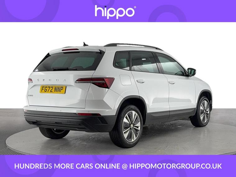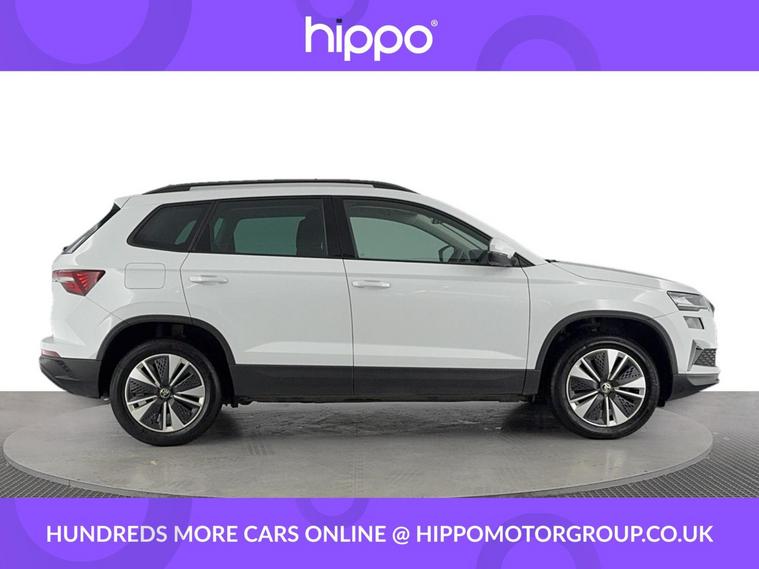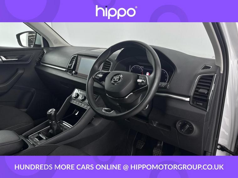 Hippo Approved is known for a wide selection of vehicles suited for various needs and budgets. Each car undergoes a rigorous 130-point quality and safety inspection at our state-of-the-art 3 million preparation centre, ensuring your peace of mind. Additionally, we offer tailored finance packages for personal and business use, making it easy to acquire your ideal car. Presenting the Skoda Karoq 1.0 TSI SE Drive SUV, a well-rounded vehicle with just 33, 134 miles on the clock. This petrol-powered car features a manual transmission and complies with Euro 6 emissions standards, promising both efficiency and driving pleasure. Aesthetically pleasing 17-inch Scutus alloy wheels in silver complement its sleek design, while the 2-spoke leather multifunction steering wheel provides comfort at your fingertips. Enjoy optimal comfort with the dual-zone air conditioning system, and tailor your driving experience thanks to the reliable cruise control with a speed limiter. Stay connected and entertained on the go with DAB digital radio and Bluetooth capabilities. Privacy glass ensures an element of exclusivity and reduced glare, while rear parking sensors offer added convenience when manoeuvring in tight spaces. Explore the superb features of this Skoda Karoq SUV and discover a perfect fit for your lifestyle.