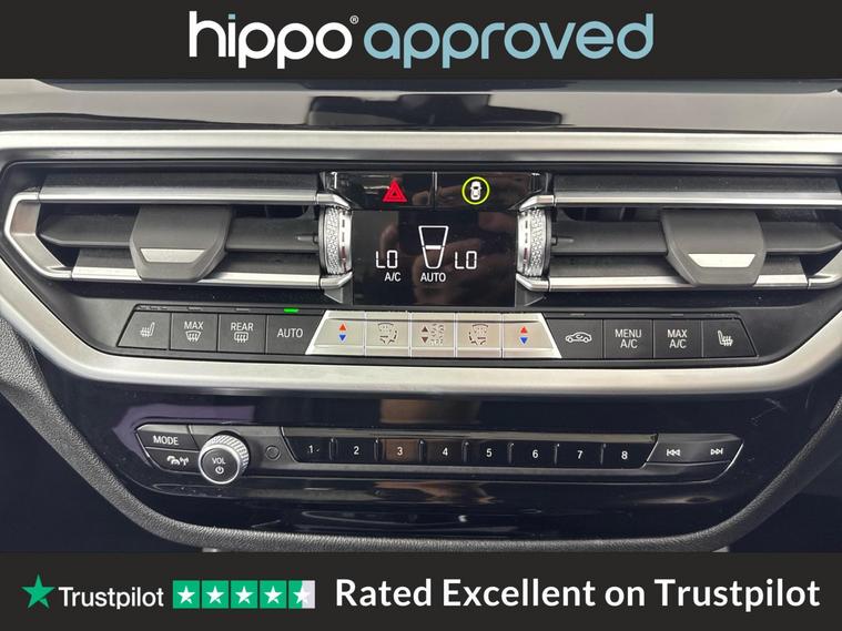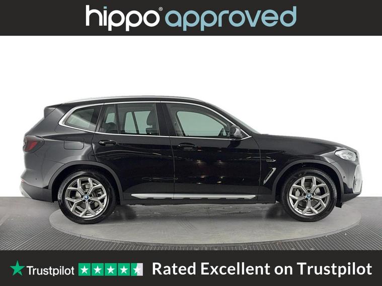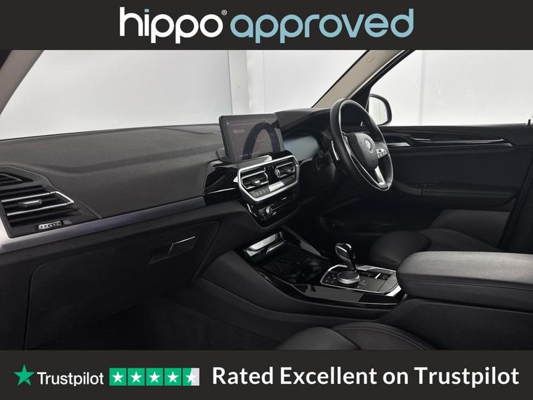 Hippo Approved is known for a wide selection of vehicles suited for various needs and budgets. Each car undergoes a rigorous 130-point quality and safety inspection at our state-of-the-art 3 million preparation centre, ensuring your peace of mind. Additionally, we offer tailored finance packages for personal and business use, making it easy to acquire your ideal car. Presenting the BMW X3 2.0 30e 12kWh xLine SUV, a petrol plug-in hybrid that seamlessly combines efficiency and performance. This versatile SUV has clocked 61, 253 miles and has been maintained with two services, the most recent being on 2nd August 2024 at 43, 479 miles. The vehicle features 19-inch 693 Y-Spoke Ferric Grey alloy wheels and automatic air conditioning with three-zone control for ultimate comfort. Navigating long journeys is made easier with cruise control and a sport leather steering wheel. The heated front seats ensure comfort in cooler months, and the heated windscreen washer jets are a practical touch. Entertainment is provided through a DAB tuner and the HiFi Loudspeaker Audio System, all accessible via the BMW Live Cockpit Professional. The X3 also adds convenience with parking assistant, front and rear parking sensors, and a reversing assist camera, elevating the driving experience.
