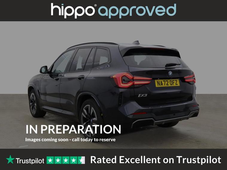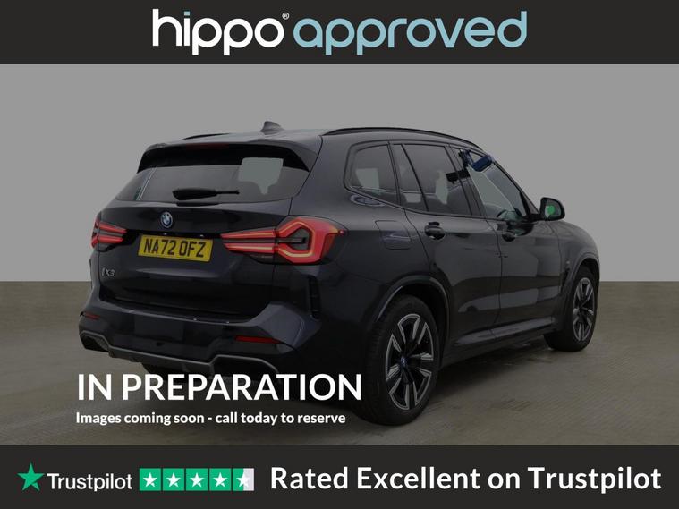 Presenting the BMW iX3 80kWh M Sport SUV 5dr Electric Auto (286 ps), with 45, 587 miles on the clock. This model features dynamic 19'' Aerodynamic Alloy Wheels in Jet Black with Bi-Colour Inserts, complemented by the M Sport package and distinctive M Sport leather steering wheel. Comfort is prioritised with automatic air conditioning, heated seats for the driver and front passenger, a heated steering wheel, and front sport seats. For entertainment and connectivity, the BMW Live Cockpit Professional and DAB Digital Radio are included, alongside enhanced Bluetooth with wireless charging. The vehicle offers outstanding convenience and safety features such as front and rear parking sensors, a reversing assist camera, and Parking Assistant. A panoramic glass sunroof creates a bright interior atmosphere, while the crash sensor system provides added peace of mind. Hippo Approved is known for a wide selection of vehicles suited for various needs and budgets. Each car undergoes a rigorous 130-point quality and safety inspection at our state-of-the-art 3 million preparation centre, ensuring your peace of mind. Additionally, we offer tailored finance packages for personal and business use, making it easy to acquire your ideal car.