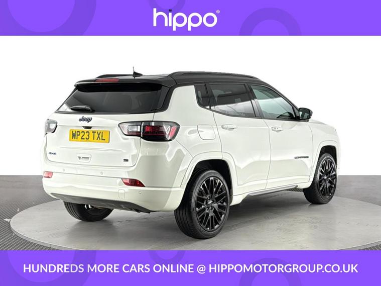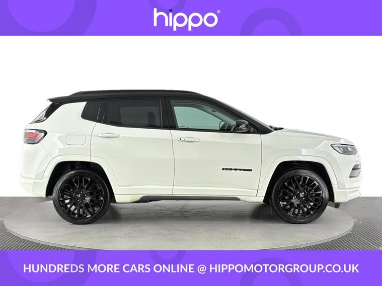 Presenting this Jeep Compass 1.3 GSE T4 11.4kWh S SUV 5dr Petrol Plug-in Hybrid Auto 4xe Euro 6 (s/s) (240 ps), offering a blend of efficiency and comfort. With a mileage of 50, 725 miles, this model is powered by a petrol plug-in hybrid engine paired with an automatic transmission, delivering 240 ps of performance. The Euro 6 emissions standard ensures compliance with current regulations, whilst the plug-in hybrid technology supports improved fuel economy and reduced emissions. This Compass stands out with 19-inch alloy wheels finished in painted gloss black, enhancing its contemporary appearance. Inside, heated front seats provide additional comfort in colder conditions, making every journey more enjoyable. The spacious SUV design delivers practicality and versatility, suitable for families or professional needs. Hippo Approved is known for a wide selection of vehicles suited for various needs and budgets. Each car undergoes a rigorous 130-point quality and safety inspection at our state-of-the-art 3 million preparation centre, ensuring your peace of mind. Additionally, we offer tailored finance packages for personal and business use, making it easy to acquire your ideal car.
