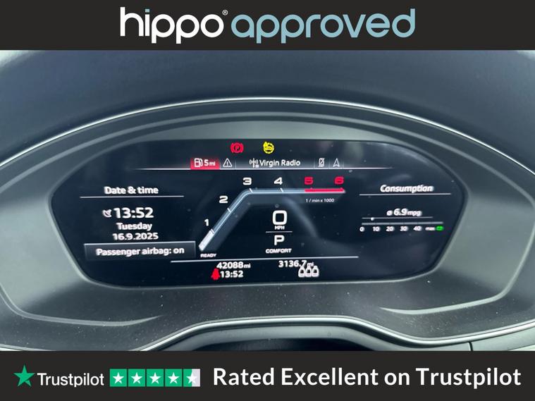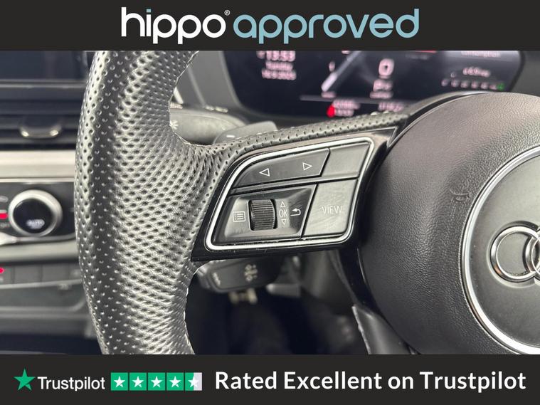 Hippo Approved is known for a wide selection of vehicles suited for various needs and budgets. Each car undergoes a rigorous 130-point quality and safety inspection at our state-of-the-art 3 million preparation centre, ensuring your peace of mind. Additionally, we offer tailored finance packages for personal and business use, making it easy to acquire your ideal car. Presenting the Audi A5 2.0 TDI 35 S line Sportback Diesel S Tronic Euro 6, a blend of performance and sophistication with just 41, 589 miles on the odometer. This vehicle features impressive 19-inch alloy wheels in a 5-Spoke-Cavo design and comes with practical enhancements like privacy glass and parking system plus with front and rear sensors, including a rear-view camera for added convenience. The interior boasts an Audi Virtual Cockpit and MMI Navigation Plus with MMI Touch, enriching your driving experience. Stay connected with the Bluetooth interface and enjoy your favourite stations through the DAB digital radio. Comfort is prioritised with deluxe 3-zone electronic climate control and heated front seats, featuring a gear lever knob in black perforated leather, adding a touch of elegance. Cruise control with a speed limiter ensures a relaxed drive on long journeys. Experience refined luxury with this Audi A5 from Hippo Approved.