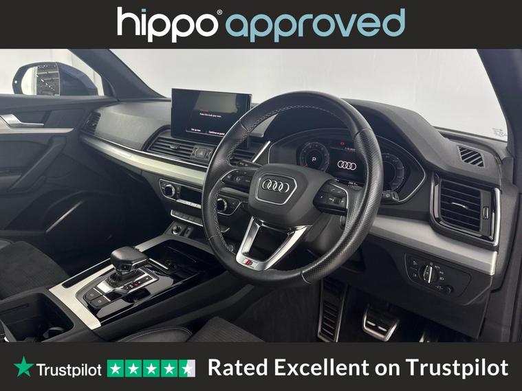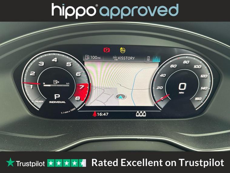 Hippo Approved is known for a wide selection of vehicles suited for various needs and budgets. Each car undergoes a rigorous 130-point quality and safety inspection at our state-of-the-art 3 million preparation centre, ensuring your peace of mind. Additionally, we offer tailored finance packages for personal and business use, making it easy to acquire your ideal car. Presenting the Audi Q5 2.0 TFSI 45 S line, an SUV designed for those who appreciate a blend of performance, luxury, and technology. With a mileage of 53, 024 miles, this vehicle promises reliable performance, thanks to its robust petrol engine and all-wheel-drive quattro system. Experience sophisticated driving with features like the 19-inch alloy wheels in a 5-twin-spoke star design and a 3-spoke multi-function leather steering wheel, complete with perforated leather grips and S badges. The interior is enhanced by the Audi Virtual Cockpit Plus with a 12.3-inch screen and three layout designs, offering a customised driving experience. Stay connected and entertained with the MMI Navigation Plus on a 10.1-inch touchscreen, complemented by Bluetooth and DAB digital radio. Comfort is ensured with deluxe 3-zone electronic climate control and heated front seats, while privacy glass and a reversing camera add practicality and convenience.