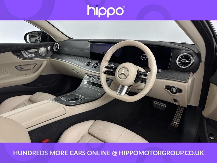 Presenting this Mercedes-Benz E Class 2.0 E300h MHEV AMG Line Night Edition (Premium Plus) Coupe, with only 33, 277 miles. This petrol hybrid car benefits from the responsive G-Tronic+ automatic transmission and Euro 6 status, delivering performance alongside efficiency. Standout exterior features include striking 20-inch AMG multi-spoke alloy wheels, finished in high-gloss black with a high-sheen detail, as well as privacy glass for both style and comfort. The addition of a panoramic glass sunroof ensures a light-filled, premium cabin experience. Hippo Approved is known for a wide selection of vehicles suited for various needs and budgets. Each car undergoes a rigorous 130-point quality and safety inspection at our state-of-the-art 3 million preparation centre, ensuring your peace of mind. Additionally, we offer tailored finance packages for personal and business use, making it easy to acquire your ideal car.