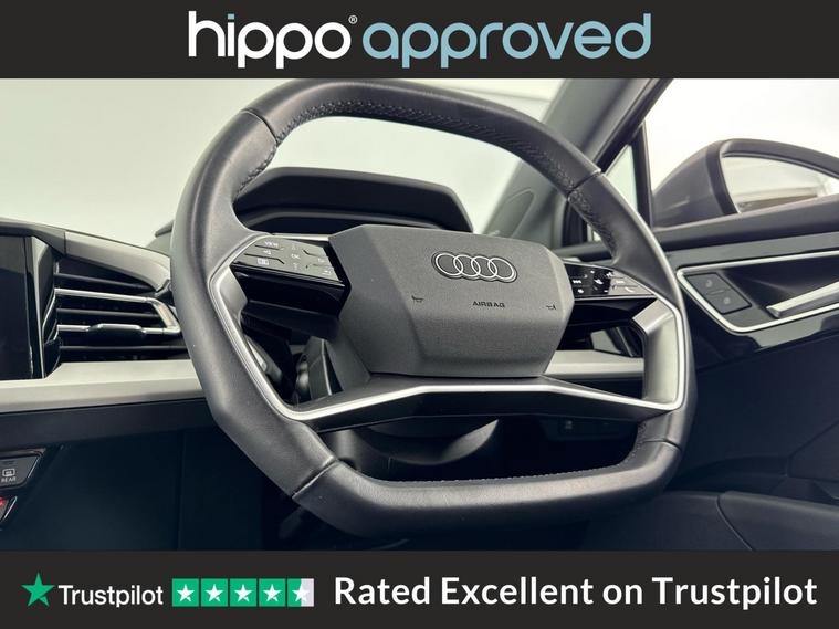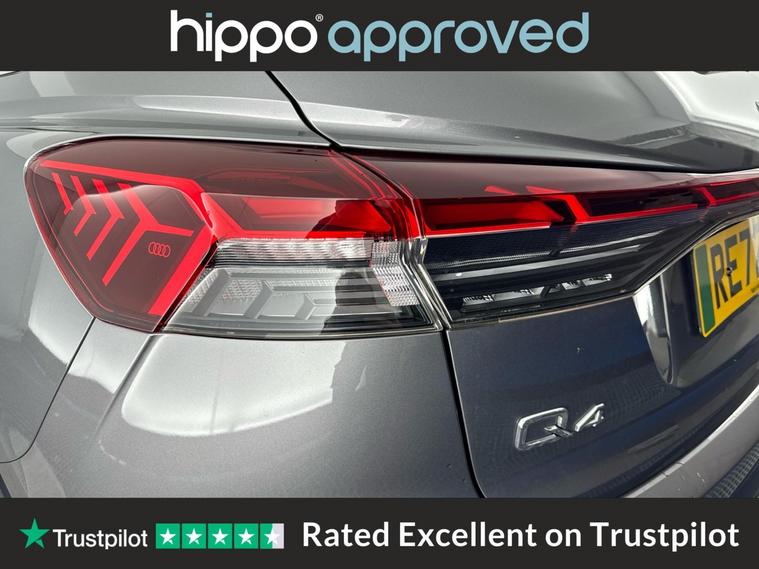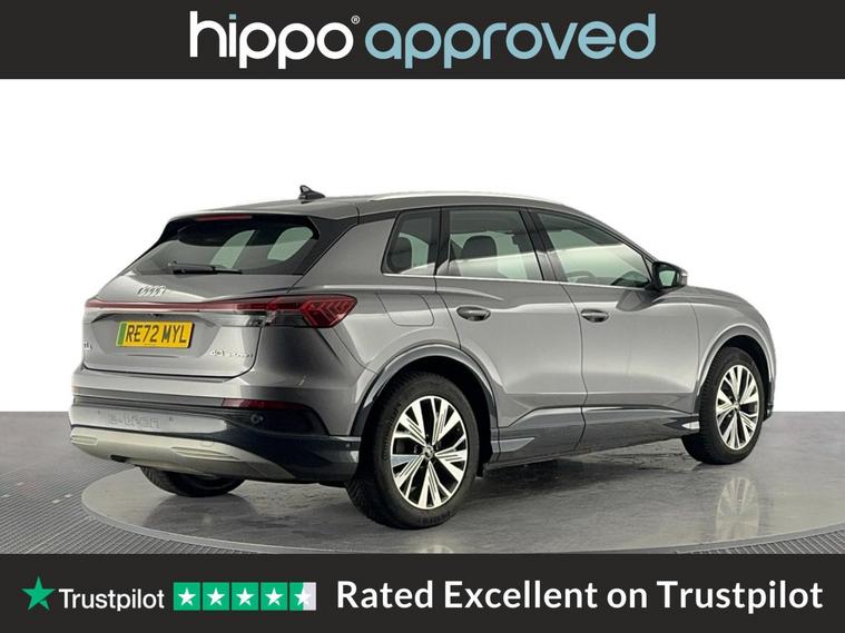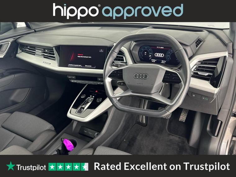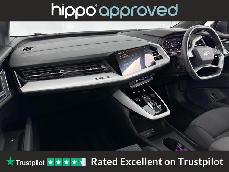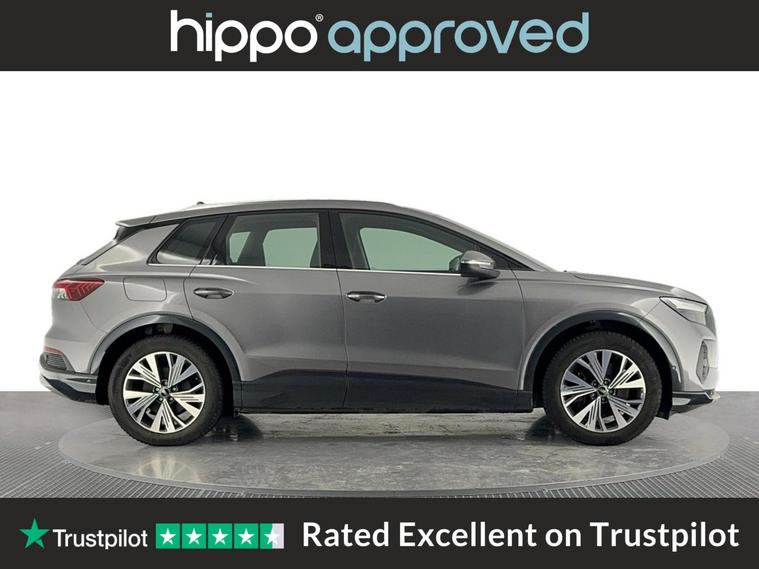 Presenting this Audi Q4 e-tron 40 Sport SUV 5dr Electric Auto, featuring an 82kWh battery delivering 204 ps and having covered 41, 632 miles. This vehicle benefits from a recent service history, with 1 recorded service at 28, 000 miles, ensuring continued reliability. It is finished in a striking Pebble Grey exterior, complemented by 19-inch alloy wheels in a 5-W-Spoke Aero design, finished in Graphite Grey with a gloss turned finish for a contemporary look. Designed for comfort and practicality, the Audi Q4 e-tron provides electric driving with a spacious SUV format, ideal for those seeking efficiency without compromise on space or style. The automatic transmission ensures ease of use in all driving conditions, while premium materials and advanced engineering combine to deliver a refined experience. Hippo Approved is known for a wide selection of vehicles suited for various needs and budgets. Each car undergoes a rigorous 130-point quality and safety inspection at our state-of-the-art 3 million preparation centre, ensuring your peace of mind. Additionally, we offer tailored finance packages for personal and business use, making it easy to acquire your ideal car.