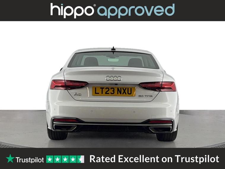 Hippo Approved is known for a wide selection of vehicles suited for various needs and budgets. Each car undergoes a rigorous 130-point quality and safety inspection at our state-of-the-art 3 million preparation centre, ensuring your peace of mind. Additionally, we offer tailored finance packages for personal and business use, making it easy to acquire your ideal car. Presenting the Audi A5 with a 2.0 TFSI 35 Sport Coupe 2dr Petrol S Tronic Euro 6 (s/s) (150 ps) configuration, boasting a respectable mileage of 25, 513 miles. This model comes equipped with 18-inch alloy wheels featuring a 5-twin-spoke design in cast aluminium, enhancing its sleek appearance. The Audi Virtual Cockpit offers a modern driving experience, complemented by a cruise control system with speed limiter for enhanced journey comfort. The A5 features a DAB digital radio, ensuring high-quality audio entertainment, while the deluxe 3-zone electronic climate control maintains optimal cabin temperature. For added luxury, the heated front seats provide comfort in colder climates. The vehicle also includes practical technology such as the MMI Navigation Plus with MMI Touch, light and rain sensors, and parking system plus with front and rear sensors, supported by a rear-view camera. Additionally, enjoy seamless connectivity through the Bluetooth interface, all while navigating with a high multi-function 3-spoke leather steering wheel.