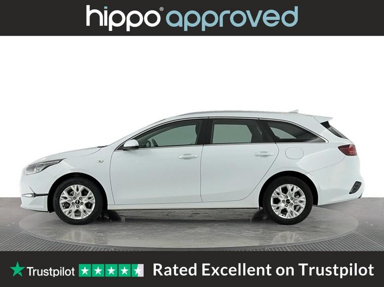 Presenting this Kia Ceed 1.0 T-GDi 2 Sportswagon, a practical and efficient estate with only 23, 355 miles on the clock. Powered by a Euro 6-compliant, 118 bhp petrol engine mated to a manual gearbox, this model offers a balanced blend of performance and economy. The Ceed is equipped with 16-inch alloy wheels and tinted glass for a modern exterior. Step inside to enjoy the comfort of air conditioning, a leather-trimmed steering wheel, and a faux leather gearshift. Stay connected and entertained with an 8-inch colour touchscreen audio display, DAB radio with MP3 compatibility, Bluetooth including voice recognition and music streaming, and a 6-speaker sound system. For added convenience, cruise control with speed limiter, steering wheel-mounted audio controls, and a reversing camera system with dynamic guidelines are also included. Hippo Approved is known for a wide selection of vehicles suited for various needs and budgets. Each car undergoes a rigorous 130-point quality and safety inspection at our state-of-the-art 3 million preparation centre, ensuring your peace of mind. Additionally, we offer tailored finance packages for personal and business use, making it easy to acquire your ideal car.