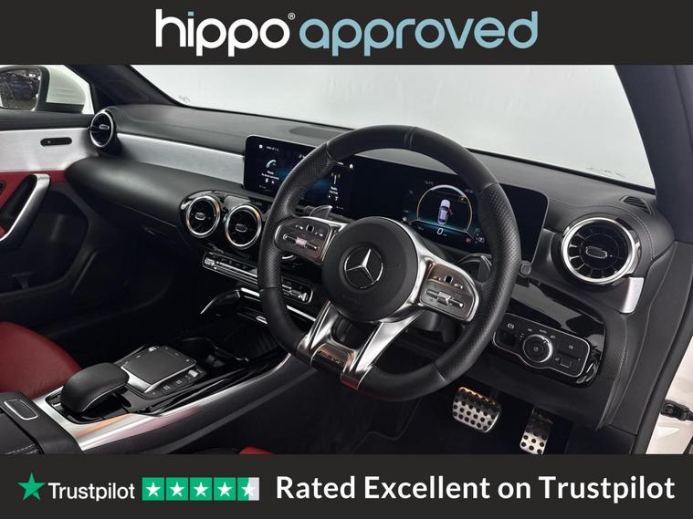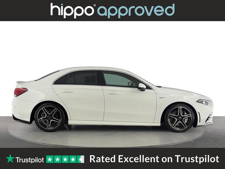 Presenting this Mercedes-Benz A Class 2.0 A35 AMG Executive Saloon, finished in striking Polar White with 54, 587 miles recorded. This 4-door model features the advanced SpdS DCT automatic gearbox and 4MATIC all-wheel drive, delivering 306 ps with Euro 6 (s/s) emissions compliance for efficient and responsive performance. The car stands out with 18-inch AMG 5 twin-spoke alloy wheels in a bi-colour finish and benefits from privacy glass for enhanced comfort and style. This Executive specification provides a well-balanced combination of luxury and sportiness in a practical saloon layout. Hippo Approved is known for a wide selection of vehicles suited for various needs and budgets. Each car undergoes a rigorous 130-point quality and safety inspection at our state-of-the-art 3 million preparation centre, ensuring your peace of mind. Additionally, we offer tailored finance packages for personal and business use, making it easy to acquire your ideal car.