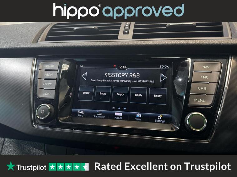 Hippo Approved is known for a wide selection of vehicles suited for various needs and budgets. Each car undergoes a rigorous 130-point quality and safety inspection at our state-of-the-art 3 million preparation centre, ensuring your peace of mind. Additionally, we offer tailored finance packages for personal and business use, making it easy to acquire your ideal car. We are pleased to present this 2019 Skoda Fabia 1.0 TSI Monte Carlo Estate, a petrol manual model with a mere 28, 808 miles on the clock. This Euro 6 compliant vehicle offers a balance of practicality and style, ideal for those who appreciate both performance and comfort. The Fabia features 16-inch Black Italia alloy wheels, adding a touch of sophistication to its overall appearance. Inside, you'll find a 3-spoke sports leather multi-function steering wheel highlighted with red stitching, which enhances the sporty character of this estate. For your convenience, the climate control air conditioning system ensures a comfortable cabin environment, while the DAB radio offers diverse listening options. The height and reach adjustable steering wheel provides a tailored driving experience, and privacy glass contributes to a sense of exclusivity. Experience this well-appointed estate today and discover why Hippo Approved vehicles are a trusted choice.