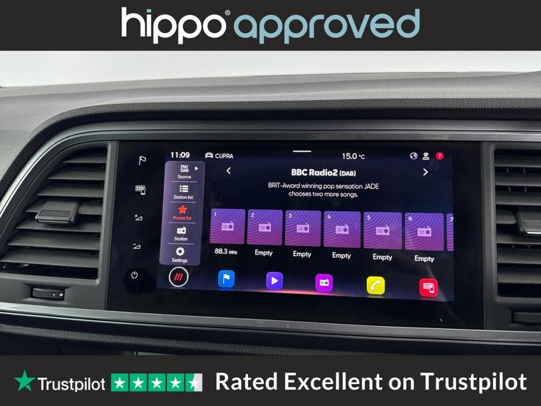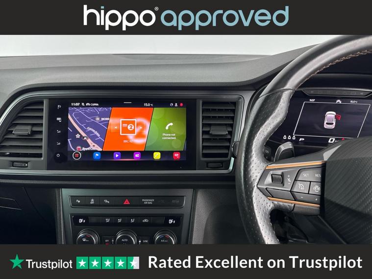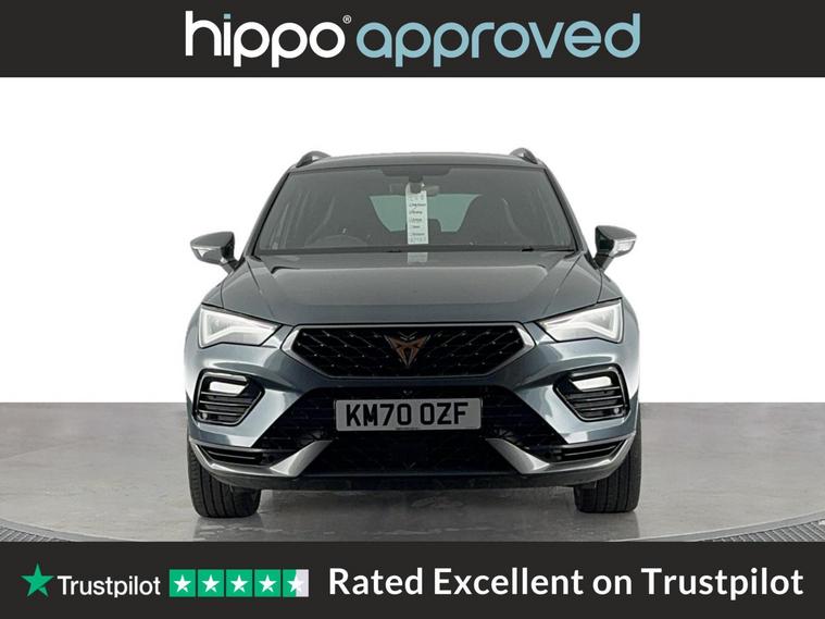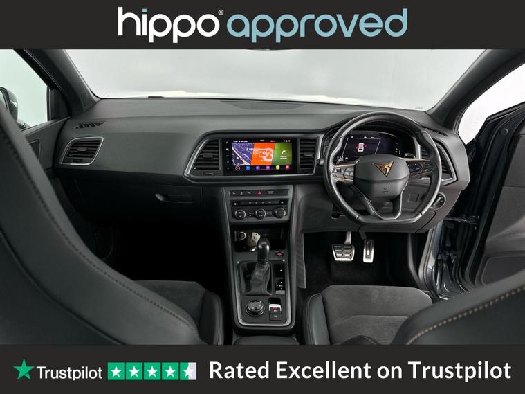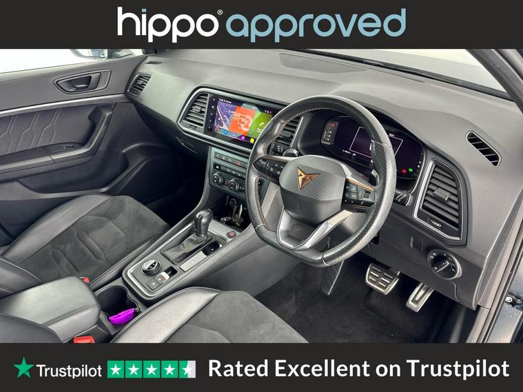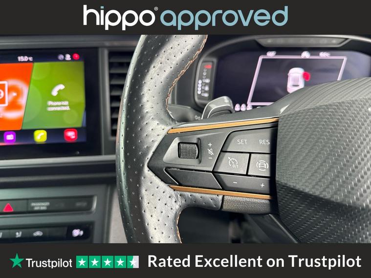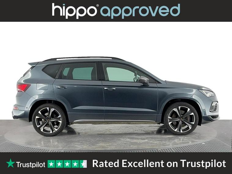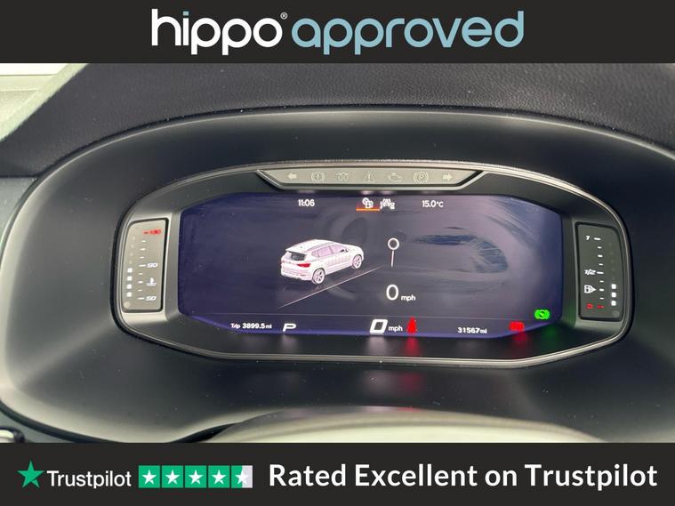 Presenting this SEAT CUPRA Ateca 2.0 TSI SUV, finished in sleek style and powered by a responsive petrol engine. With a mileage of just 31, 425 miles, this vehicle offers a dynamic driving experience supported by a DSG automatic gearbox and 4Drive all-wheel drive technology, meeting Euro 6 emissions standards. Maintenance has been carefully managed, with a total of three servicesincluding the most recent completed on 02/09/2024 at 25, 999 miles. Notable features include striking 19-inch sport machined alloy wheels, dark tinted rear windows for added privacy, and a fully digital cockpit for a modern, intuitive interface. The interior boasts dual zone climate control, leather gear knob and steering wheel, and the Navigation System Plus for seamless journeys. For ease of parking and enhanced safety, benefit from park assist with self-parking functionality, as well as both rear view and top view cameras. Cruise control further supports long-distance comfort and convenience. Hippo Approved is known for a wide selection of vehicles suited for various needs and budgets. Each car undergoes a rigorous 130-point quality and safety inspection at our state-of-the-art 3 million preparation centre, ensuring your peace of mind. Additionally, we offer tailored finance packages for personal and business use, making it easy to acquire your ideal car.