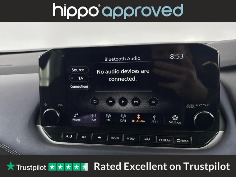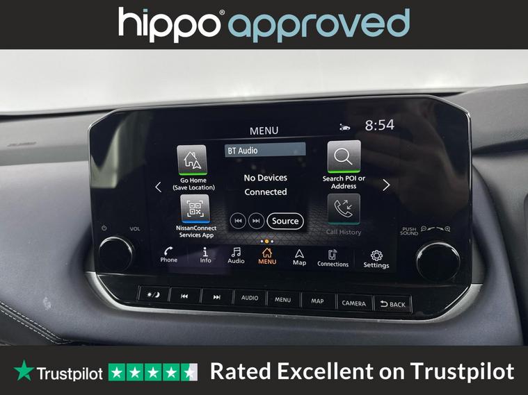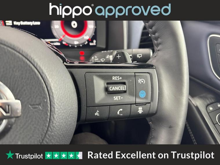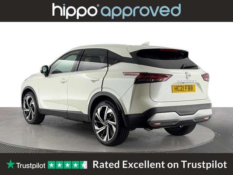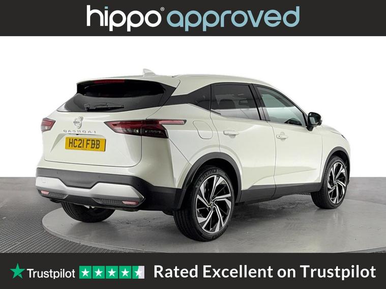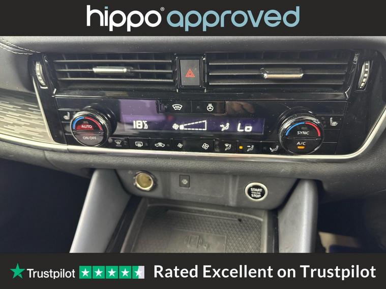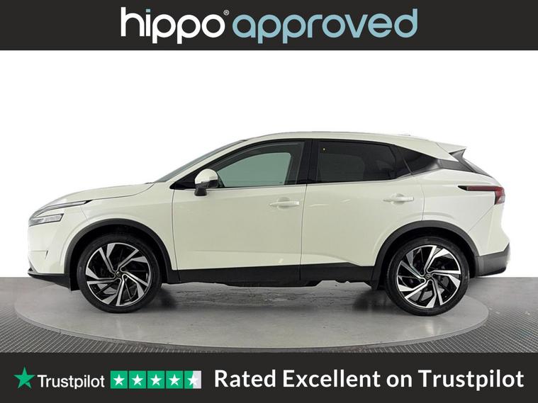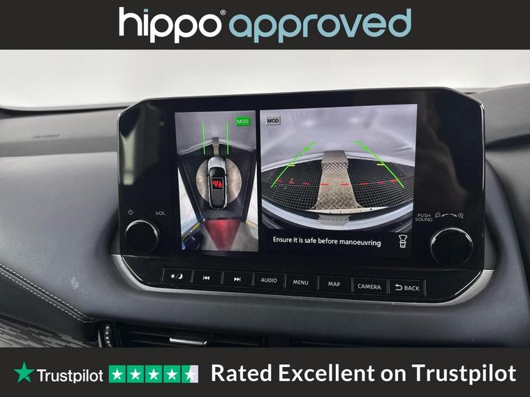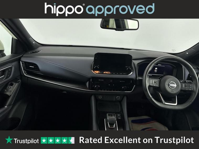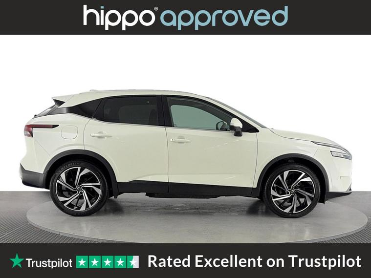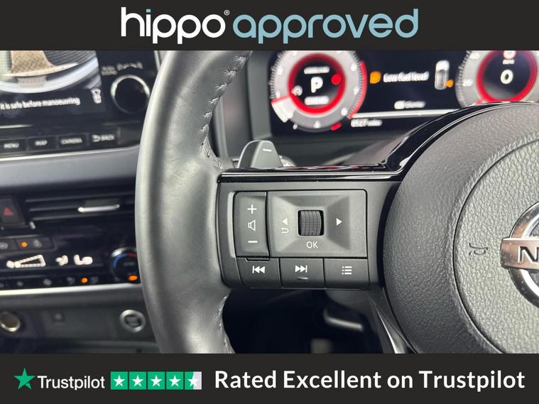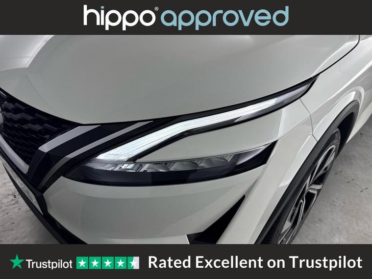 Hippo Approved is known for a wide selection of vehicles suited for various needs and budgets. Each car undergoes a rigorous 130-point quality and safety inspection at our state-of-the-art 3 million preparation centre, ensuring your peace of mind. Additionally, we offer tailored finance packages for personal and business use, making it easy to acquire your ideal car. For sale is a Nissan Qashqai 1.3 DIG-T MHEV Tekna+ SUV, an excellent choice for those seeking a reliable and stylish vehicle. This petrol hybrid model, compliant with Euro 6 standards, has only 6, 961 miles on the clock, offering many more journeys to come. The car features 20-inch alloy wheels and privacy glass for a sleek exterior appearance. Stay connected with Bluetooth and enjoy your favourite tunes via the AM-FM audio system with DAB. The interior includes automatic dual-zone climate control with a pollen filter for your comfort, while the Bose Pack ensures premium sound quality. Navigate with ease using the NissanConnect Navigation system, and park confidently with front and rear parking sensors, as well as a rear view camera. Additional conveniences include a leather steering wheel, multifunctional steering wheel, and intelligent cruise control, making every drive enjoyable and stress-free.