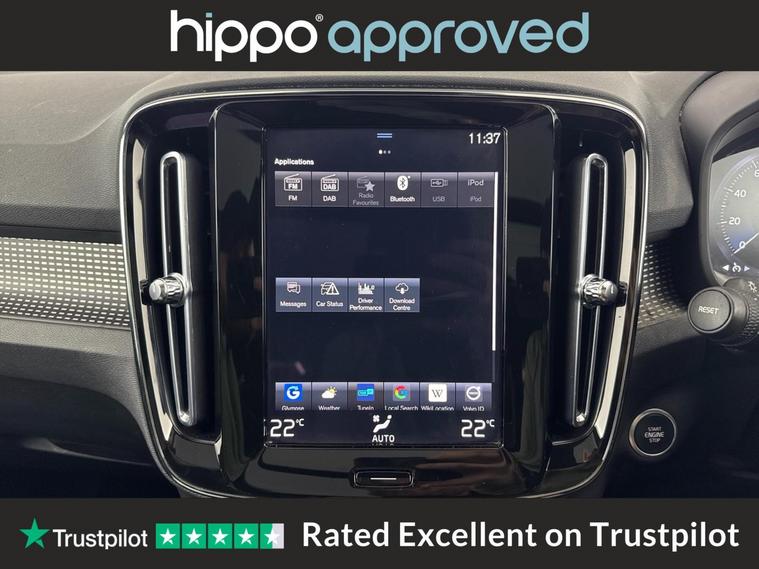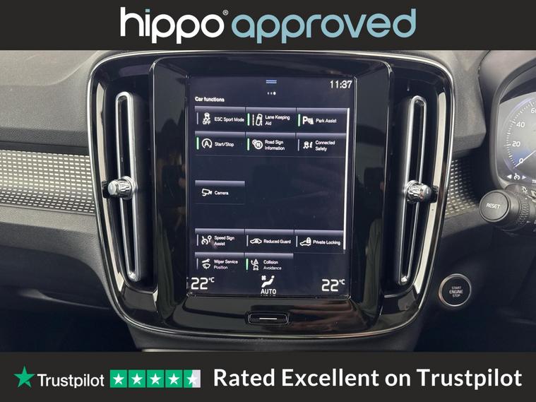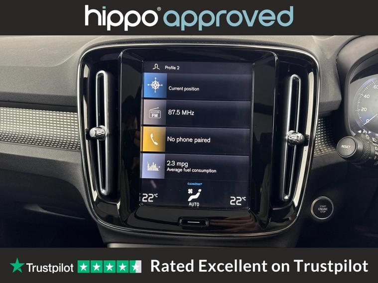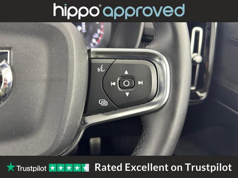 Hippo Approved is known for a wide selection of vehicles suited for various needs and budgets. Each car undergoes a rigorous 130-point quality and safety inspection at our state-of-the-art 3 million preparation centre, ensuring your peace of mind. Additionally, we offer tailored finance packages for personal and business use, making it easy to acquire your ideal car. This Volvo XC40 1.5 T3 R-Design SUV offers an engaging driving experience with its stylish design and efficient petrol engine. With 37, 456 miles on the clock, it has been well-maintained, boasting three services, the most recent completed on 31st October 2024 at 28, 815 miles. The vehicle's exterior, finished in a sleek Black Stone, is complemented by 18-inch Alloy Wheels in a striking 5 Double Spoke Diamond Cut Matt Black finish. The interior is equally refined, featuring Leather-Nubuck in Charcoal. Enjoy the comfort of the Power Glass Tilt and Slide Panoramic Sunroof with Sun Curtain and 2-Zone Electronic Climate Control with Rear Air Vents. Modern connectivity is at your fingertips with the Bluetooth Handsfree System and Sensus Navigation, accompanied by the crystal-clear sound of DAB Radio. Safety and convenience are enhanced with Park Assist, Cruise Control, and Rear Park Assist, ensuring a stress-free journey every time you drive.