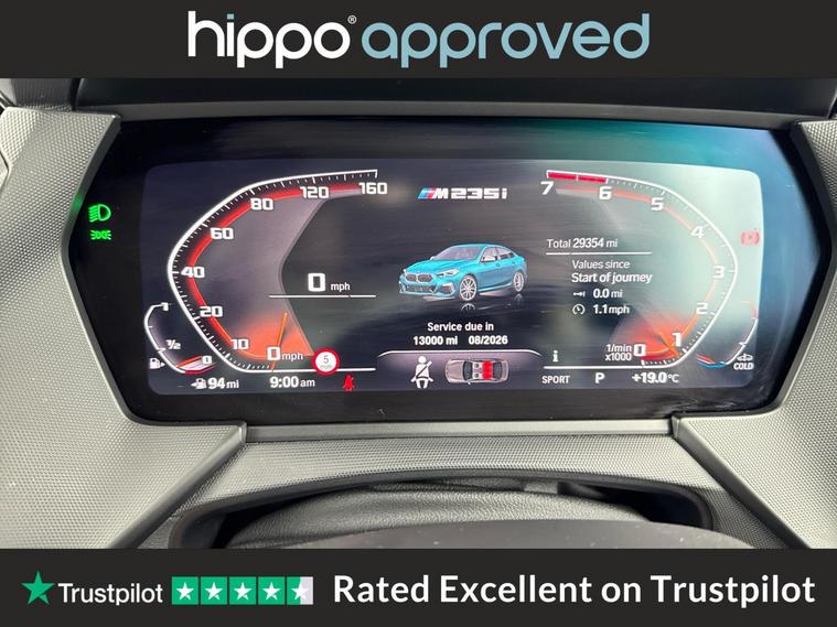 Hippo Approved is known for a wide selection of vehicles suited for various needs and budgets. Each car undergoes a rigorous 130-point quality and safety inspection at our state-of-the-art 3 million preparation centre, ensuring your peace of mind. Additionally, we offer tailored finance packages for personal and business use, making it easy to acquire your ideal car. Listed here is the BMW 2 Series Gran Coupe, specifically the 2.0 M235i Saloon 4dr Petrol Auto xDrive Euro 6 (s/s) (306 ps) variant. With a mileage of 29, 164 miles and two service records, the last one at 23, 000 miles, this vehicle promises reliability. Key features include striking 19-inch alloy wheels in M Double-Spoke Style 552 finished in Bi-Colour, which complement the cars dynamic appearance. Inside, the dual-zone automatic air conditioning enhances comfort, catering to the needs of both driver and passengers by allowing temperature preferences to be customised independently. Explore a premium driving experience with this BMW Gran Coupe, assured by our high-quality preparation standards and financing options tailored to your requirements.