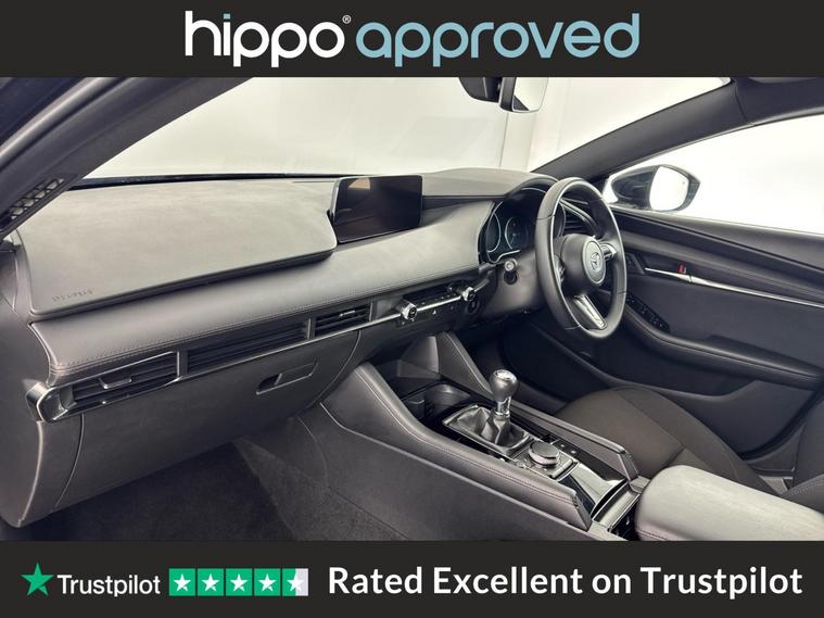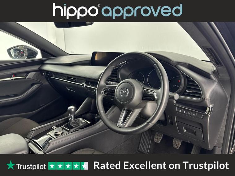 Presenting this Mazda Mazda3 2.5 e-SKYACTIV-G MHEV Centre-Line Hatchback, finished in excellent condition and having covered only 11, 750 miles. Powered by a Euro 6 compliant 2.5-litre petrol engine paired with a manual gearbox, this hatchback delivers efficient and responsive performance. The specification includes striking 16-inch silver alloy wheels and a refined interior highlighted by a leather-wrapped steering wheel. Comfort is enhanced with dual-zone climate control air conditioning, while integrated Bluetooth and an AM-FM-DAB radio with 8 speakers provide seamless connectivity and entertainment. Navigation is made simple via the built-in Mazda Navigation System. For added safety and convenience, front and rear parking sensors, as well as a reversing camera, are included. Audio and Bluetooth controls are conveniently mounted on the steering wheel, and Mazda Radar Cruise Control supports a relaxed driving experience. Hippo Approved is known for a wide selection of vehicles suited for various needs and budgets. Each car undergoes a rigorous 130-point quality and safety inspection at our state-of-the-art 3 million preparation centre, ensuring your peace of mind. Additionally, we offer tailored finance packages for personal and business use, making it easy to acquire your ideal car.