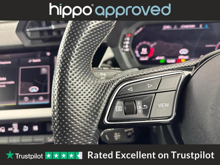 Presenting this Audi A3 1.5 TFSI 35 S line Sportback 5dr Petrol S Tronic Euro 6 (s/s) (150 ps) with 39, 968 miles on the clock. This model offers a dynamic driving experience combined with style and efficiency. It features 18-inch alloy wheels with a distinctive 5-arm dynamic design, giving the car a striking presence on the road. For enhanced comfort on longer journeys, cruise control is included, allowing you to maintain a steady speed with ease. Inside, the Sportback layout ensures practical space for both passengers and luggage, while the S Tronic automatic gearbox delivers smooth and responsive gear changes. As a Euro 6 compliant petrol engine, this A3 balances performance with reduced emissions, making it both powerful and environmentally conscious. Hippo Approved is known for a wide selection of vehicles suited for various needs and budgets. Each car undergoes a rigorous 130-point quality and safety inspection at our state-of-the-art 3 million preparation centre, ensuring your peace of mind. Additionally, we offer tailored finance packages for personal and business use, making it easy to acquire your ideal car.