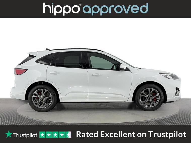 Hippo Approved is known for a wide selection of vehicles suited for various needs and budgets. Each car undergoes a rigorous 130-point quality and safety inspection at our state-of-the-art 3 million preparation centre, ensuring your peace of mind. Additionally, we offer tailored finance packages for personal and business use, making it easy to acquire your ideal car. For consideration is a Ford Kuga 1.5T EcoBoost ST-Line SUV 5dr Petrol Manual Euro 6 (s/s) (150 ps), with only 5, 300 miles on the clock. This vehicle is designed to provide both style and functionality, featuring striking 18-inch alloy wheels with a 10-spoke Rock Metallic design. The Ford SYNC3 Navigation System enhances your driving experience, offering intuitive access to essential navigation functions and entertainment options, keeping you well-informed and connected on the road. This Kuga model is perfect for those seeking a dynamic ride with strong performance, courtesy of the 150 ps EcoBoost engine, while adhering to Euro 6 emission standards for improved environmental efficiency. The manual transmission further enhances driver engagement, making this SUV an excellent choice for both city driving and longer journeys.