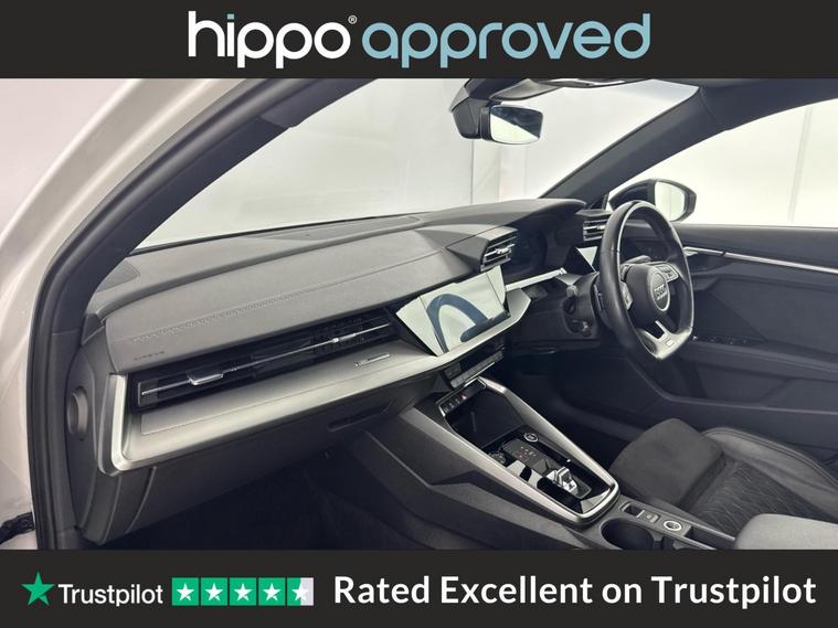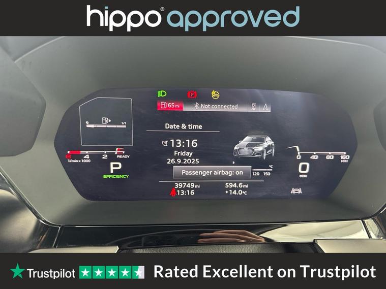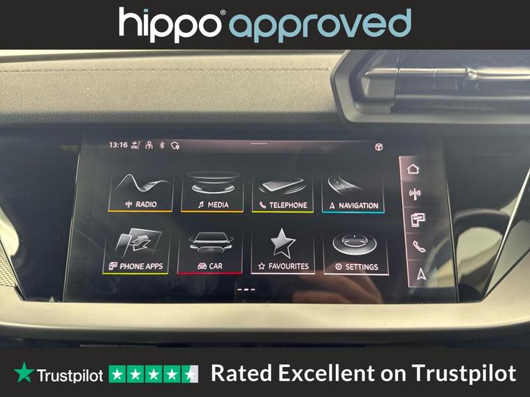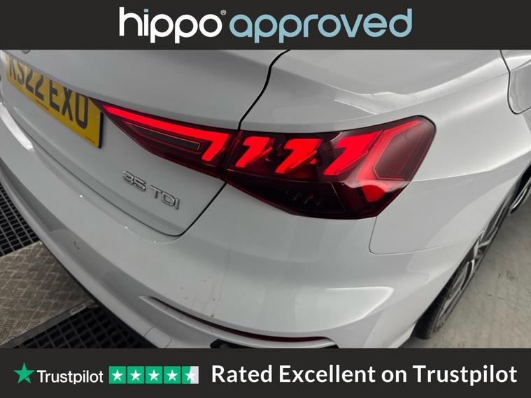 Hippo Approved is known for a wide selection of vehicles suited for various needs and budgets. Each car undergoes a rigorous 130-point quality and safety inspection at our state-of-the-art 3 million preparation centre, ensuring your peace of mind. Additionally, we offer tailored finance packages for personal and business use, making it easy to acquire your ideal car. Presenting the Audi A3 2.0 TDI 35 Edition 1 Saloon, a versatile vehicle with a refined blend of style and functionality. This model, with 39, 312 miles on the clock, is powered by a fuel-efficient Euro 6 compliant diesel engine, matched with the smooth S Tronic transmission. The car boasts a high resolution 10.1-inch touchscreen MMI Navigation Plus system, offering seamless connectivity and advanced navigation capabilities to enhance your driving experience. Its aesthetic appeal is highlighted by 19-inch alloy wheels featuring a 5-arm trapezoid design in matt grey with a diamond cut finish, adding a touch of modern sophistication. Practicality is taken into account with rear parking sensors, assisting in navigating tight spots with ease. With only one service recorded at 19, 000 miles, this Audi A3 promises both reliability and performance, making it a sensible choice for those seeking comfort and efficiency on the road.