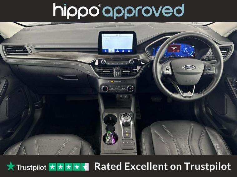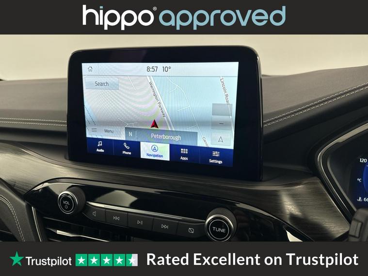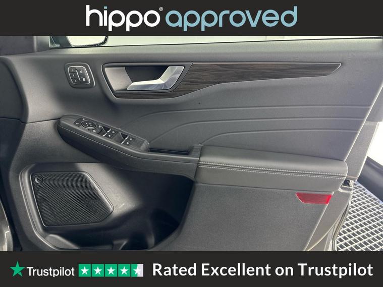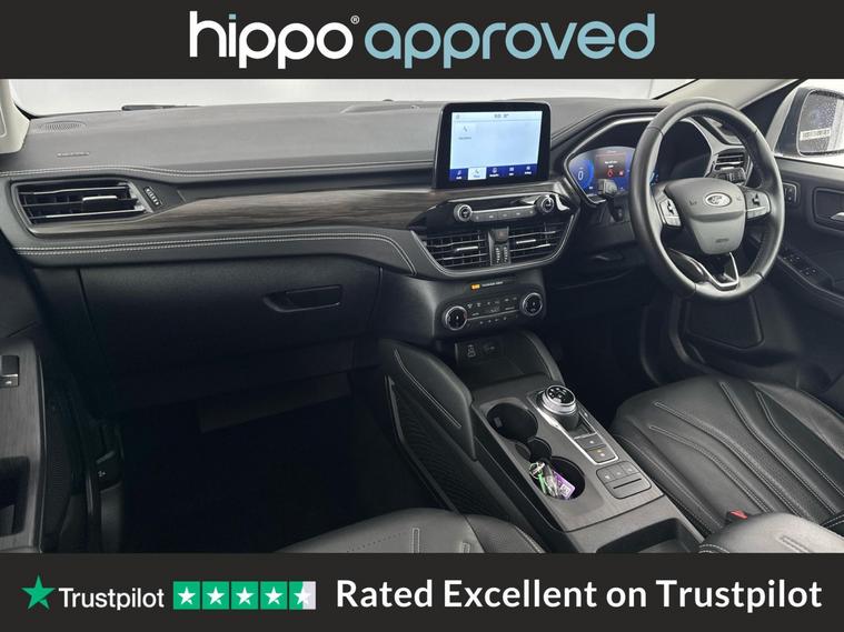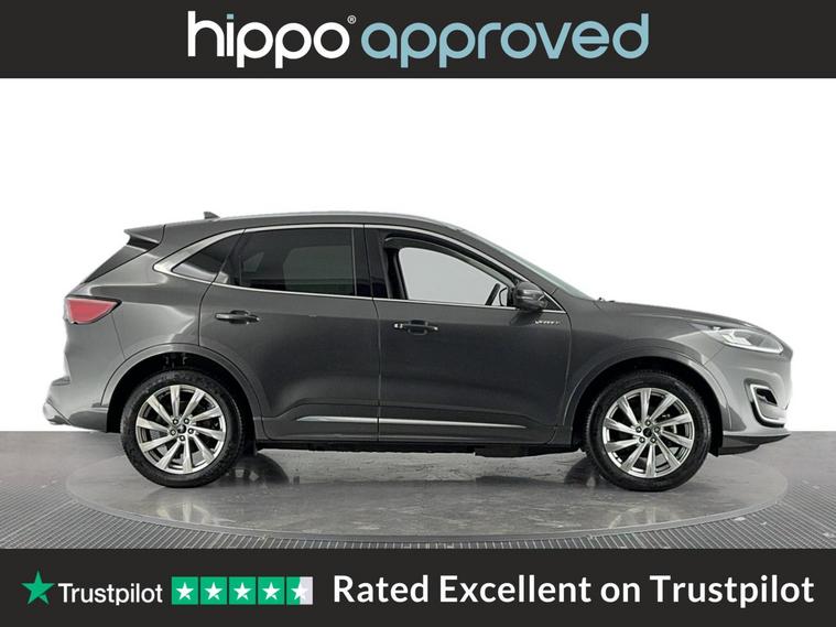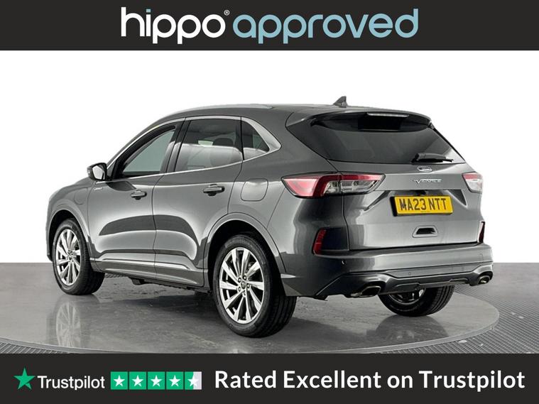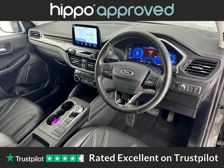Hippo Approved is known for a wide selection of vehicles suited for various needs and budgets. Each car undergoes a rigorous 130-point quality and safety inspection at our state-of-the-art 3 million preparation centre, ensuring your peace of mind. Additionally, we offer tailored finance packages for personal and business use, making it easy to acquire your ideal car. Presenting the Ford Kuga 2.5 Duratec 14.4kWh Vignale SUV, a versatile petrol plug-in hybrid with a seamless CVT transmission that aligns with Euro 6 emissions standards. With a mileage of 44, 446 miles, this SUV combines efficiency with comfort, offering a range of premium features. The vehicle boasts 19-inch alloy wheels with a 5x2 spoke design in Luster Nickel. Experience comfort with the Electronic Automatic Temperature Control and heated driver, passenger, and rear seats, complemented by a heated steering wheel and quickclear heated windscreen for those frosty mornings. Benefit from the Ford SYNC3 DAB Navigation System, including GEO Awareness, which informs you of ULEZ zones during your journeys. Parking is made easy with front and rear sensors accompanied by a rear-view camera. The Kuga also includes privacy glass and a winter pack for added convenience. Cruise control with a speed limiter ensures a relaxed drive. The sensico-trimmed steering wheel with medium light stone stitching adds an elegant finish to this well-equipped SUV.