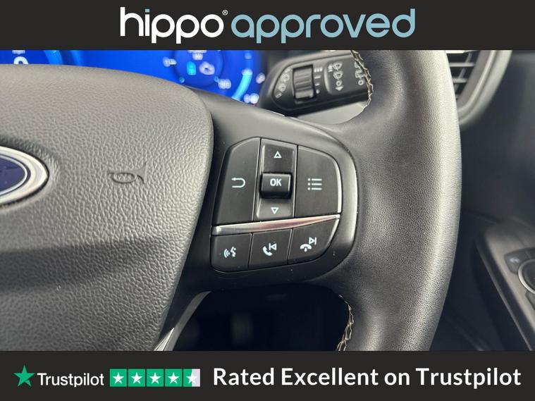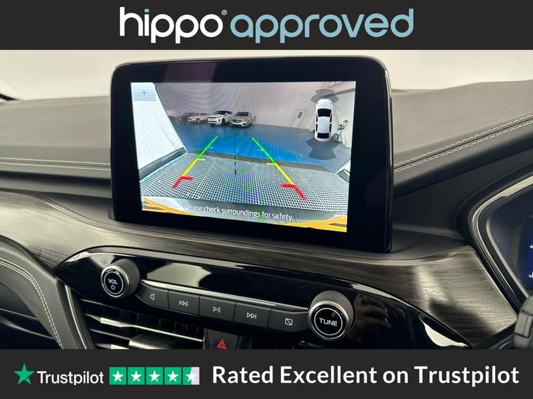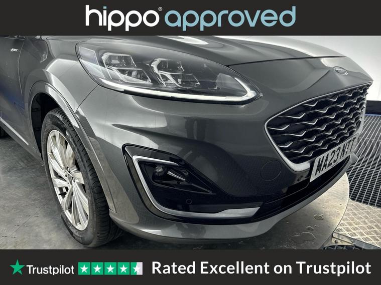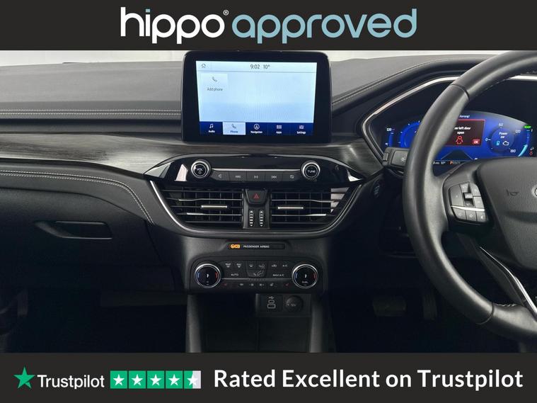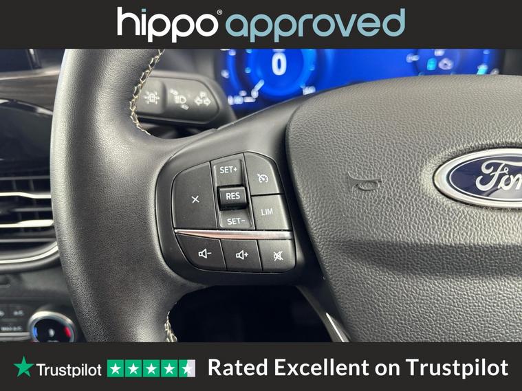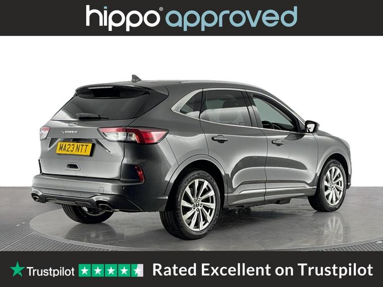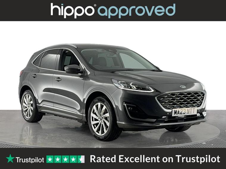 Hippo Approved is known for a wide selection of vehicles suited for various needs and budgets. Each car undergoes a rigorous 130-point quality and safety inspection at our state-of-the-art 3 million preparation centre, ensuring your peace of mind. Additionally, we offer tailored finance packages for personal and business use, making it easy to acquire your ideal car. Presenting the Ford Kuga 2.5 Duratec 14.4kWh Vignale SUV, a versatile petrol plug-in hybrid with a seamless CVT transmission that aligns with Euro 6 emissions standards. With a mileage of 44, 446 miles, this SUV combines efficiency with comfort, offering a range of premium features. The vehicle boasts 19-inch alloy wheels with a 5x2 spoke design in Luster Nickel. Experience comfort with the Electronic Automatic Temperature Control and heated driver, passenger, and rear seats, complemented by a heated steering wheel and quickclear heated windscreen for those frosty mornings. Benefit from the Ford SYNC3 DAB Navigation System, including GEO Awareness, which informs you of ULEZ zones during your journeys. Parking is made easy with front and rear sensors accompanied by a rear-view camera. The Kuga also includes privacy glass and a winter pack for added convenience. Cruise control with a speed limiter ensures a relaxed drive. The sensico-trimmed steering wheel with medium light stone stitching adds an elegant finish to this well-equipped SUV.