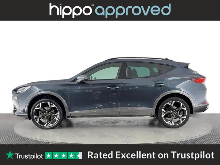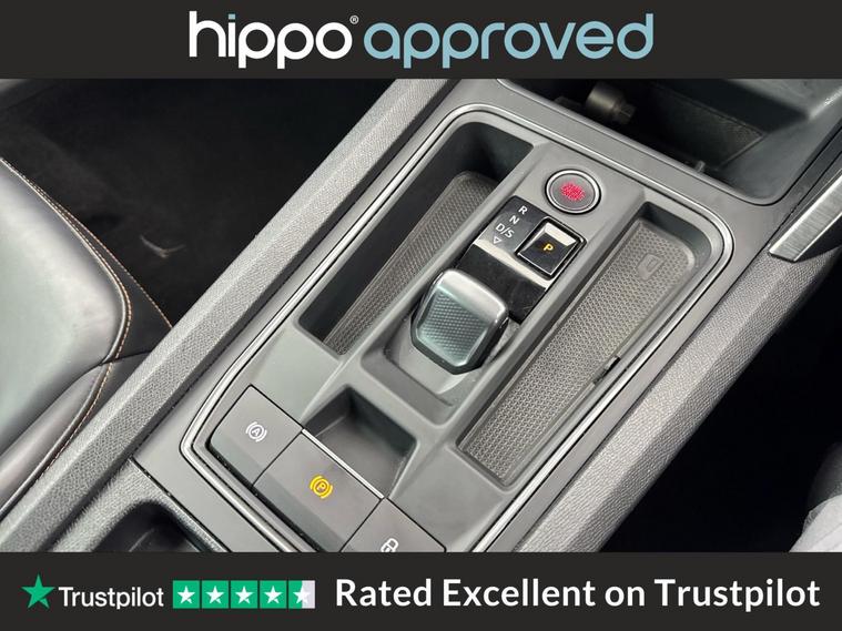 Hippo Approved is known for a wide selection of vehicles suited for various needs and budgets. Each car undergoes a rigorous 130-point quality and safety inspection at our state-of-the-art 3 million preparation centre, ensuring your peace of mind. Additionally, we offer tailored finance packages for personal and business use, making it easy to acquire your ideal car. Introducing the CUPRA Formentor 1.5 TSI V2 SUV, a dynamic choice for those in search of style and performance. With a mileage of 31, 650 miles and a service history of two services, the last at 31, 000 miles, this vehicle is in excellent condition. The Euro 6 compliant petrol engine offers an impressive 150 PS, delivering a balance of power and efficiency. The DSG gearbox provides smooth driving dynamics and enhances the overall driving experience. This Formentor is equipped with striking 19-inch Alloy Wheels in Exclusive Machined Sport design, featuring a sophisticated combination of matt black and silver. Enjoy ease of navigation with the built-in Navigation System, while the Rear View Camera and Park Assist, complete with front and rear sensors, make parking a breeze. This CUPRA Formentor combines practicality with a sporty edge, making it a superb option for your motoring needs.