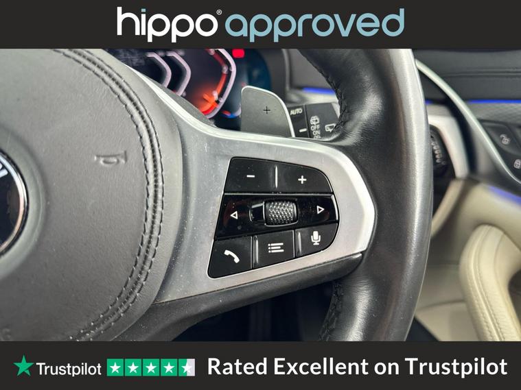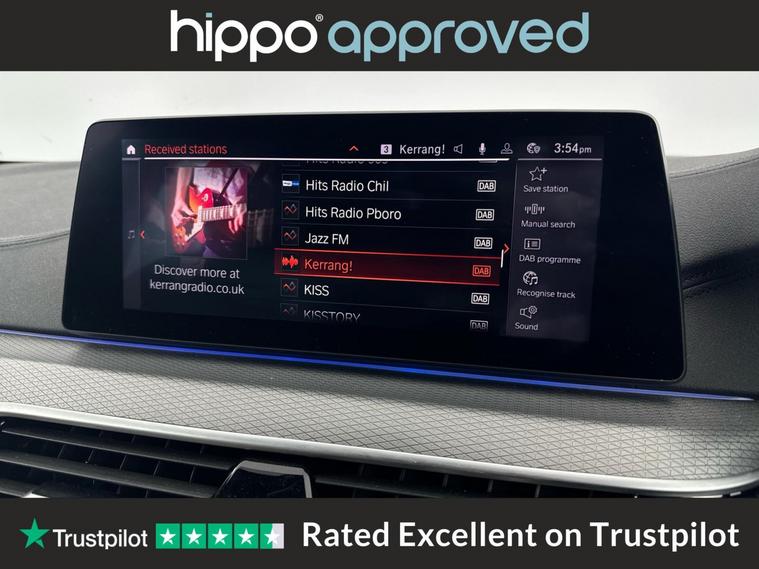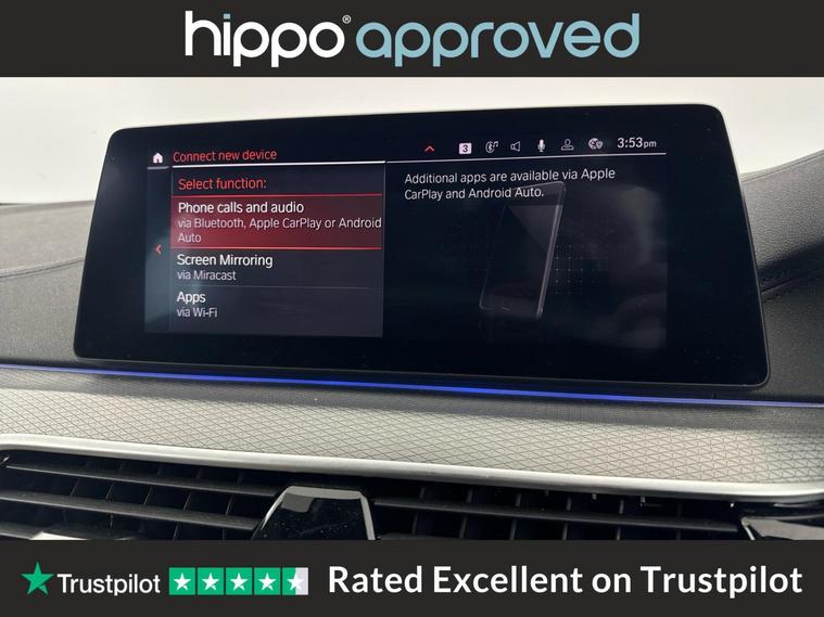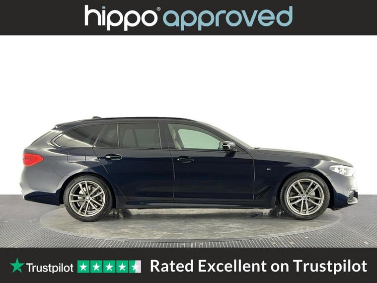 Presenting this BMW 5 Series 2.0 520d MHT M Sport Touring, an Auto Euro 6 compliant diesel hybrid automatic, with a mileage of 38, 000 miles. Finished in striking Carbon Black, its interior boasts luxurious Dakota Leather with Exclusive Stitching in Ivory White, complemented by subtle black accents. The vehicle is equipped with 18-inch Light M Double Spoke alloy wheels (662M), and features the desirable M Sport Package for enhanced styling and comfort. Inside, dual zone automatic air conditioning ensures a comfortable cabin climate, while front seat heating provides added warmth on colder journeys. The BMW Live Cockpit Professional system offers a fully digital driving experience, linked to a 10.25-inch colour touch display. Bluetooth hands-free capability and a USB audio interface facilitate seamless connectivity, while DAB digital radio provides a wide choice of stations. Driving convenience and safety are further supported by cruise control with brake function, Park Distance Control (front and rear), and multifunction steering wheel controls, including the M specific steering wheel design. Hippo Approved is known for a wide selection of vehicles suited for various needs and budgets. Each car undergoes a rigorous 130-point quality and safety inspection at our state-of-the-art 3 million preparation centre, ensuring your peace of mind. Additionally, we offer tailored finance packages for personal and business use, making it easy to acquire your ideal car.