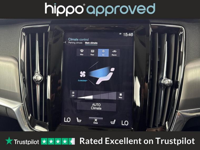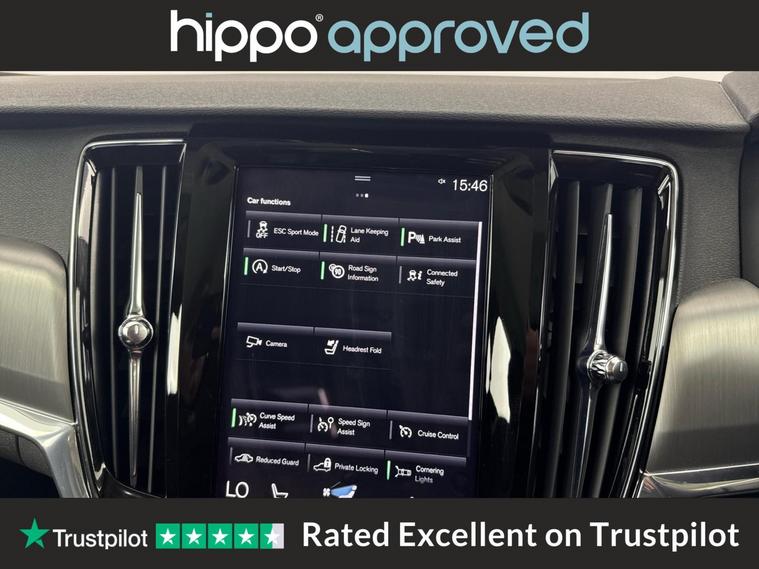 Hippo Approved is known for a wide selection of vehicles suited for various needs and budgets. Each car undergoes a rigorous 130-point quality and safety inspection at our state-of-the-art 3 million preparation centre, ensuring your peace of mind. Additionally, we offer tailored finance packages for personal and business use, making it easy to acquire your ideal car. Introducing the Volvo S90, a 2.0 T4 Momentum Plus Saloon with a smooth petrol automatic transmission. It conforms to Euro 6 standards and is propelled by a robust 190 PS engine. With a modest mileage of 20, 009 miles and two recorded services, this vehicle has been well cared for, with the latest service completed at 9, 443 miles. This model is equipped with 18-inch alloy wheels featuring an elegant 10-spoke turbine design, offering both aesthetic appeal and stable performance. Inside, you'll find a sophisticated 2-zone electronic climate control system, enhanced by Volvo's CleanZone air quality system that filters pollen, ensuring a comfortable and healthy cabin environment for all passengers. This Volvo S90 combines luxury, performance, and safety, making it an excellent choice for discerning drivers. For more information or to discuss finance options, please contact us at Hippo Approved.