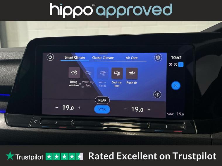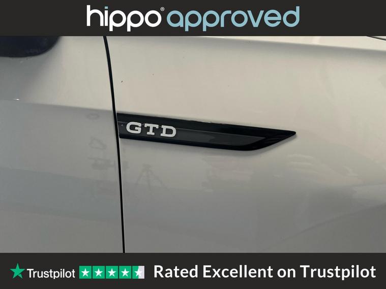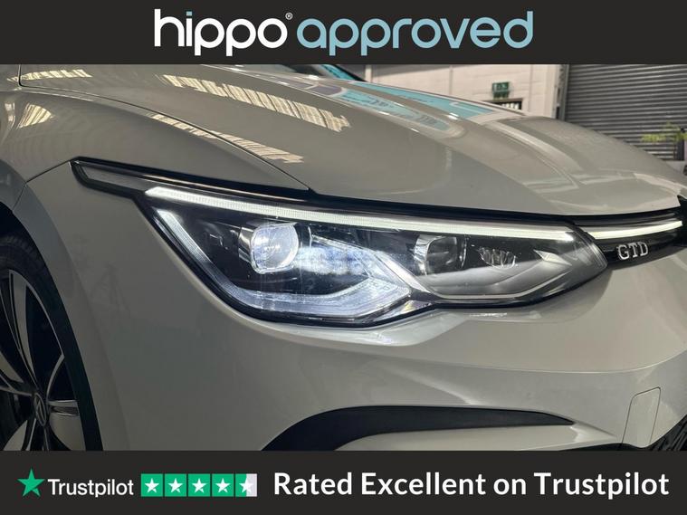Hippo Approved is known for a wide selection of vehicles suited for various needs and budgets. Each car undergoes a rigorous 130-point quality and safety inspection at our state-of-the-art 3 million preparation centre, ensuring your peace of mind. Additionally, we offer tailored finance packages for personal and business use, making it easy to acquire your ideal car. Discover the blend of performance and style in this Volkswagen Golf, specifically the 2.0 TDI GTD Hatchback 5dr Diesel DSG Euro 6 (s/s) with 200 ps. With a mileage of 45, 050 miles, it promises reliability along with a dynamic driving experience. Outfitted with 18-inch Bakersfield alloy wheels and the distinctive GTD styling pack, this hatchback has a sporty yet sophisticated appearance. Inside, the Digital Cockpit Pro offers an advanced display setup, while the Discover Navigation Infotainment System ensures you stay connected on the go. Comfort is paramount with a heated multifunction leather steering wheel and 3 Zone Electronic Climate Control. For additional convenience, adaptive cruise control and parking sensors at both the front and rear make every journey easier. The heated rear windscreen and rear tinted glass not only add to the vehicles practicality but also its allure. This Volkswagen Golf provides an excellent opportunity to experience refined performance and innovative technology.
