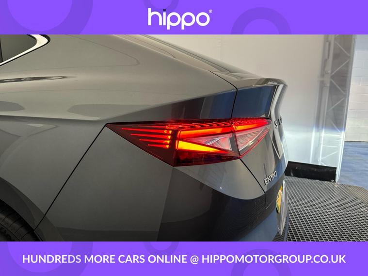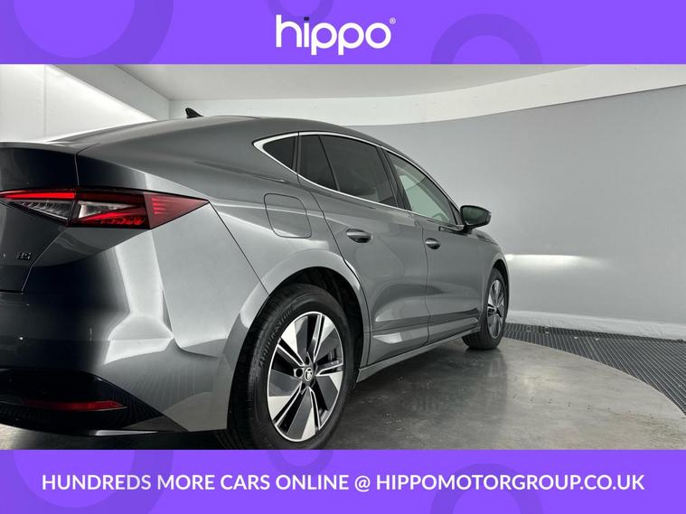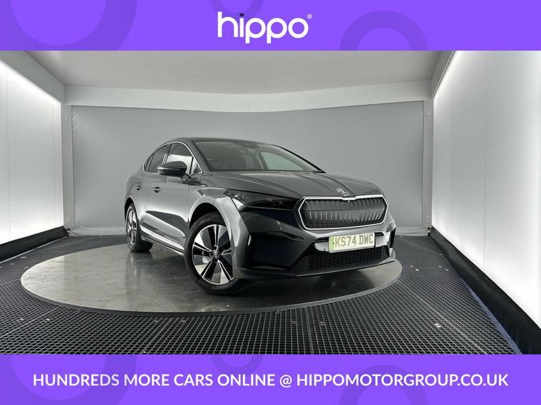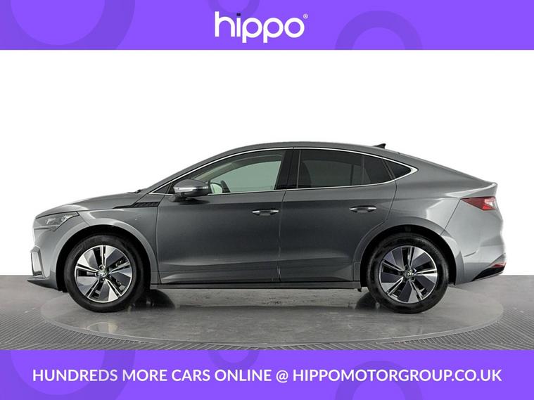 Presenting this Skoda Enyaq 82kWh 85 Edition Coupe 5dr Electric Auto, finished with just 5, 660 miles on the clock. Powered by a responsive 286 ps electric drivetrain and equipped with DC175kW charging capability, this car offers both performance and efficiency. This Enyaq features 19-inch Regulus Anthracite alloy wheels alongside privacy glass and acoustic side windows for a refined drive. The interior boasts heated front seats, a panoramic glass roof that brightens the cabin, and a tri-zone climate control system for a comfortable environment all year round. Driver convenience is enhanced with the 2-spoke heated leather multi-function steering wheel, incorporating paddles for recuperation level selection, as well as adaptive cruise control with traffic jam assist. Front and rear parking sensors are paired with a rear view camera to aid in manoeuvring, while the advanced satellite navigation system, DAB radio, and Bluetooth connectivity cover your infotainment needs. The windscreen features heat-insulating glass to improve comfort and energy efficiency. Hippo Approved is known for a wide selection of vehicles suited for various needs and budgets. Each car undergoes a rigorous 130-point quality and safety inspection at our state-of-the-art 3 million preparation centre, ensuring your peace of mind. Additionally, we offer tailored finance packages for personal and business use, making it easy to acquire your ideal car.