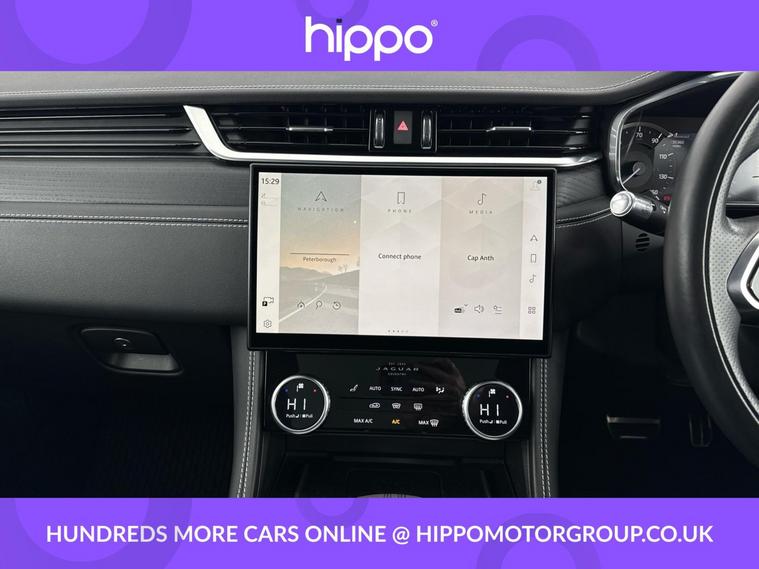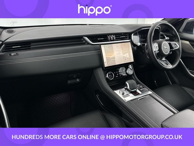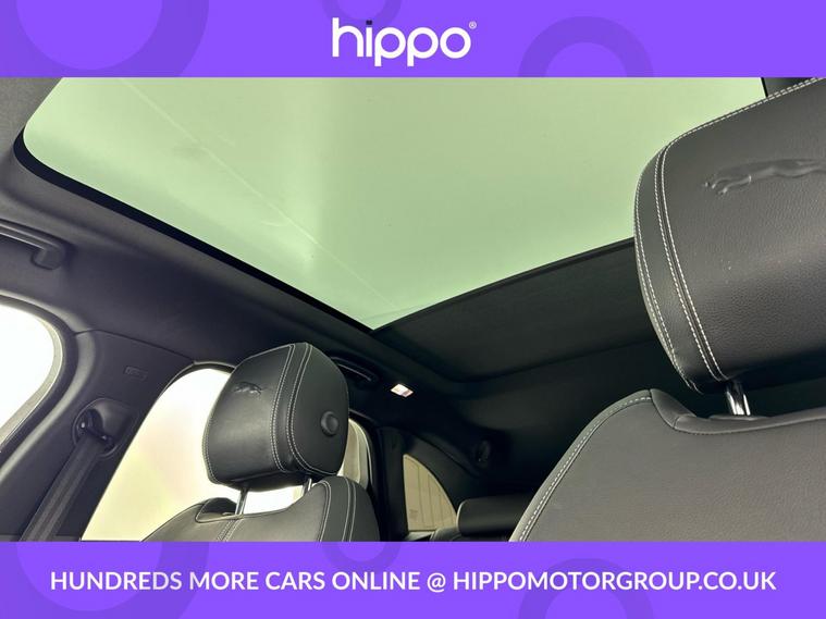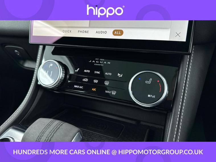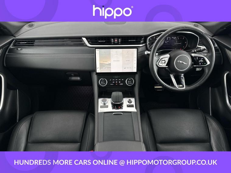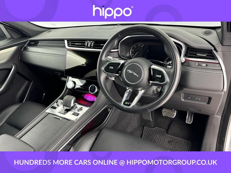 Presenting a Jaguar F-PACE 2.0 D200 MHEV R-Dynamic Black SUV, powered by a 204 ps diesel engine with an automatic all-wheel drive transmission, compliant with Euro 6 standards. With 35, 294 miles on the clock, this vehicle features a suite of amenities including 12-way heated electric front seats with 2-way manual headrests and a heated steering wheel for enhanced comfort. The 2-zone climate control ensures a pleasant cabin environment, while the fixed panoramic roof provides an airy and spacious feel. For both style and substance, it is equipped with 20-inch gloss black 10-spoke alloy wheels, a Black Exterior Pack, and R-Dynamic branded enhancements such as bumper finishes, grille, and door cladding. Privacy glass, a rear camera, and front and rear parking aids offer practical benefits for everyday use. Entertainment comes via a premium sound system and DAB digital radio, while cruise control with speed limiter promotes relaxed long-distance travel. Hippo Approved is known for a wide selection of vehicles suited for various needs and budgets. Each car undergoes a rigorous 130-point quality and safety inspection at our state-of-the-art 3 million preparation centre, ensuring your peace of mind. Additionally, we offer tailored finance packages for personal and business use, making it easy to acquire your ideal car.
