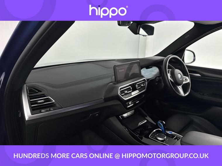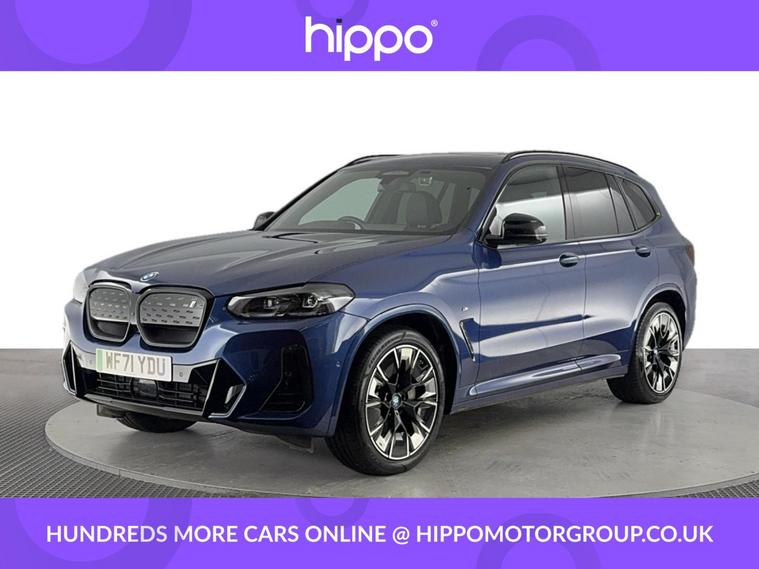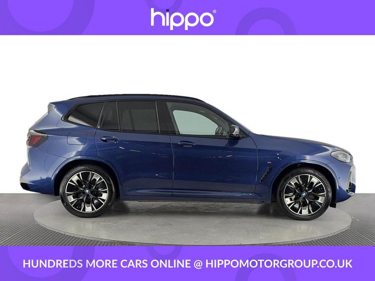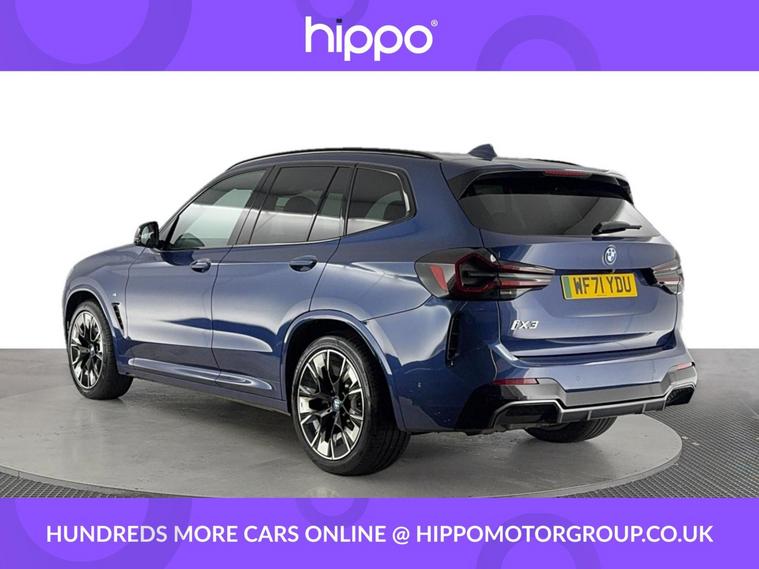 Presenting this BMW iX3 80kWh M Sport Pro SUV 5dr Electric Auto, finished in striking Phytonic Blue with 62, 812 miles on the clock. The cabin is appointed with Vernasca leather seats in black, enhanced by distinctive blue contrast stitching, providing both comfort and style. This model features a panoramic glass sunroof, which adds a sense of openness and natural light throughout the interior. Externally, the car is equipped with 20-inch M Aerodynamic bi-colour alloy wheels, offering both a dynamic appearance and refined performance. As a fully electric vehicle, the iX3 combines environmental efficiency with renowned BMW engineering. Hippo Approved is known for a wide selection of vehicles suited for various needs and budgets. Each car undergoes a rigorous 130-point quality and safety inspection at our state-of-the-art 3 million preparation centre, ensuring your peace of mind. Additionally, we offer tailored finance packages for personal and business use, making it easy to acquire your ideal car.