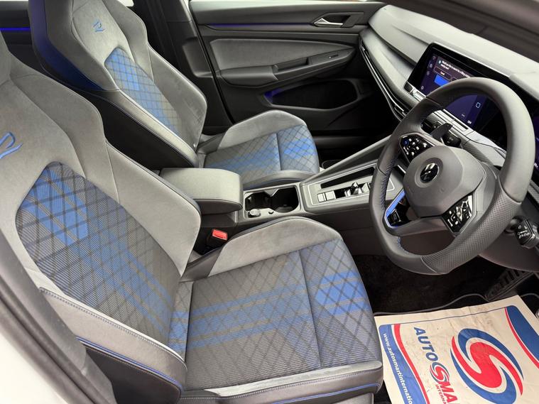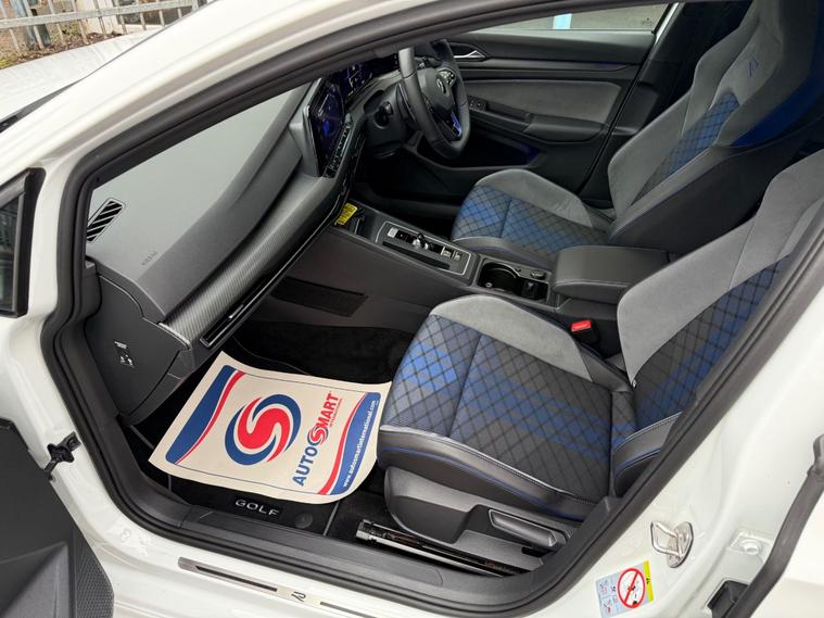 BE VERY QUICK NOT TO MISS THIS AMAZING CAR FINISHED IN PURE WHITE, THIS IMMACULATE GOLF R HAS A FULL SERVICE HISTORY WITH VW AND IS TRULY SOMETHING TO GET EXCITED ABOUT, THIS 4MOTION DSG AUTO LEGEND HAS THE PERFORMANCE PACK WITH 19"" GLOSS BLACK ESTORIL ALLOYS AND A GLOSS BLACK FACTORY ROOF SPOILER, AMBIENT LIGHTING PACK AS WELL AS A TOP SPEED OF 167MPH OVER STANDARD 155MPH, JUST ARRIVED!! 3 point height adj front seatbelts + pretensioners, 3 rear three point seatbelts, Driver and front passenger airbag with front passenger airbag deactivation, Drivers and front passengers safety optimised head restraints, Extended pedestrian protection measures, Front and rear passengers curtain airbag system including front side airbags, Two tone horn, Tyre pressure monitoring system, Alarm with interior protection and deactivation via infotainment system, Electronic engine immobiliser, Keyless entry with start/stop button on centre console, Anti-lock brake system, Blue brake callipers in front with R logo, Electronic parking brake with auto hold, ESC (Electronic Stability Control), Front disc brakes, Rear disc brakes, Front differential lock, XDS electronic differential lock for improved traction and handling, 4Motion 4 wheel driver, Petrol Particulate Filter, Sports suspension, Automatic dimming rear view mirror, Matt chrome effect door mirrors with integrated indicators, Remote electrically heated, adjustable and foldable door mirrors, including door mirror puddle lights and reverse activated kerb-view adjustment on pa, Front and rear electric windows, Front windscreen washers and wipers with 4x interval delay, Heat insulating glass windscreen, Heated rear windscreen, Rain sensor, Rear tinted glass 65% light absorbing from B pillar backwards, Rear windscreen washer and wiper with interval delay, Ambient lighting, exterior illuminated styling elements at the sides, Body colour bumpers, Body colour door handles, Body colour rear roof spoiler, Illuminated front grille, Performance rear spoiler, R rear diffuser with twin oval chrome exhaust tailpipes in left and right, Special solid paint, Automatic headlamp activation with Coming home and Leaving home feature, High level 3rd brake light, Highway light, IQ.Light - LED Matrix headlights, dynamic headlight control with advanced high beam control matrix dipped main beam + LED DRL + 22 LED lights, LED front fog lights with 5 honeycomb design, LED License plate illumination, LED rear combination lamp inlcuding dynamic turn signal, Rear fog light on one side and reversing lights on both sides, Welcome light, 3 rear head restraints, Front seat lumbar support adjuster, Front sports seats, Height adjustable front seats, Isofix child seat preparation for 2 rear child seats and front passenger seat, Split folding backrest with centre armrest and unsplit rear seat bench, Black metal chrome decorative inserts in das
