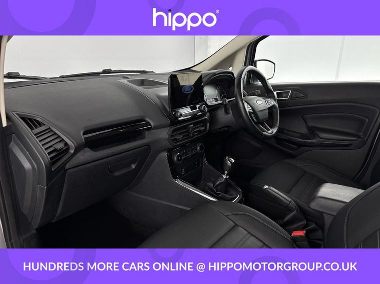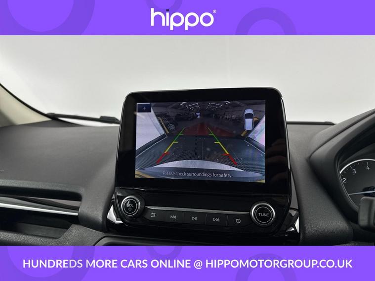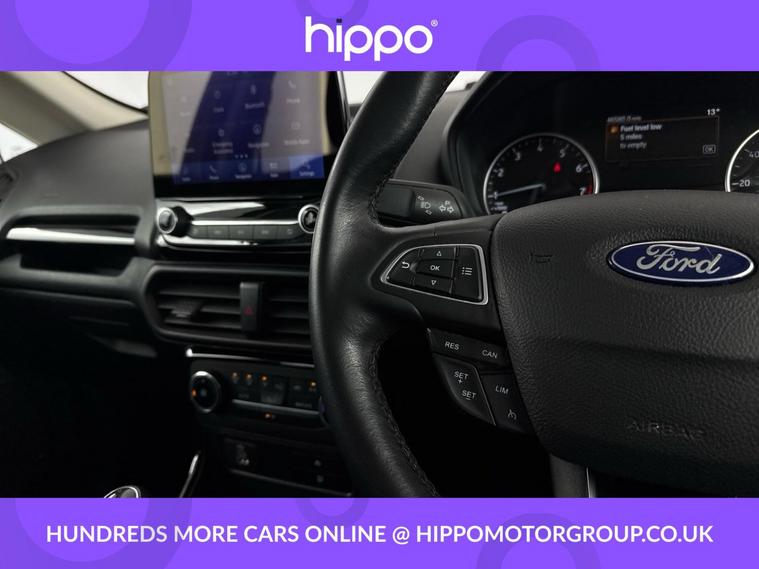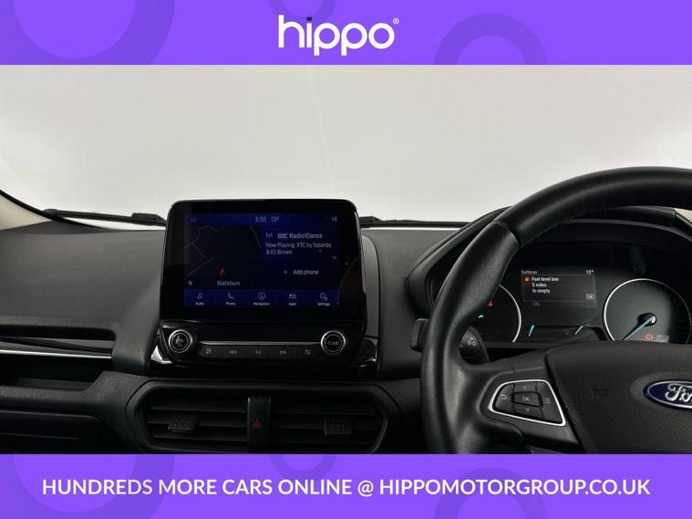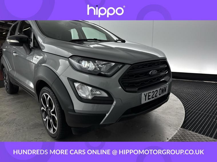 Hippo Approved is known for a wide selection of vehicles suited for various needs and budgets. Each car undergoes a rigorous 130-point quality and safety inspection at our state-of-the-art 3 million preparation centre, ensuring your peace of mind. Additionally, we offer tailored finance packages for personal and business use, making it easy to acquire your ideal car. Presenting the Ford EcoSport 1.0T EcoBoost Active SUV, an ideal choice for those seeking a reliable and stylish vehicle. With just 44, 959 miles on the clock, this Solar Silver SUV stands out with its modern design and functionality. Equipped with 17-inch alloy wheels featuring a 5-spoke Y-design and dark inserts, it combines aesthetics with performance. Enhance your driving experience with Ford SYNC 3 Navigation, showcased on an 8-inch touchscreen, and enjoy the convenience of cruise control and rear parking sensors. The EcoSport also includes a Quickclear heated front windscreen, ensuring fast defrosting on chilly mornings, while the privacy glass adds a touch of sophistication. Inside, the leather steering wheel with remote audio controls and electronic automatic temperature control (EATC) provide comfort and ease. Additionally, the rear-view camera pack ensures improved visibility and confidence while manoeuvring. Embrace a seamless blend of practicality and style with this exceptional Ford EcoSport.