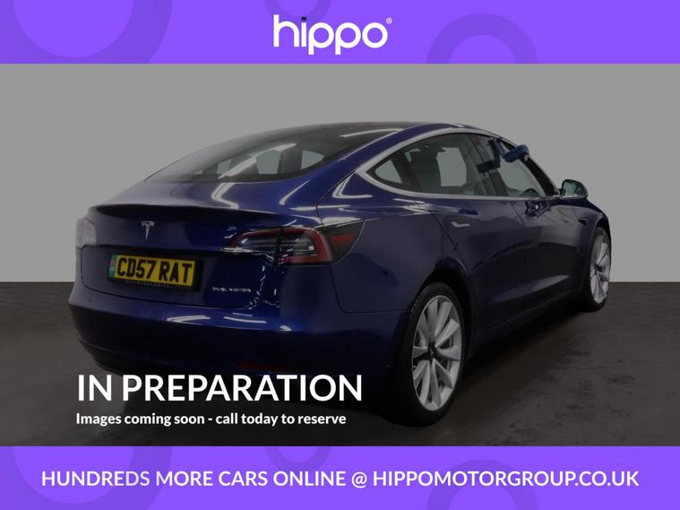 Tesla Model 3 (Dual Motor) Long Range Saloon 4dr Electric Auto 4WDE, having covered just 22, 529 miles. This all-electric saloon features all-wheel drive, providing reliable performance in various conditions. The spacious interior includes a distinctive 15-inch touchscreen with onboard maps and navigation, as well as satellite-view maps with live traffic visualisation. Connectivity is straightforward with Bluetooth, while the OEM sound system offers clear audio. Comfort is assured with heated front seats and two-zone climate control. The fixed panoramic glass rooftinted and equipped with ultraviolet and infrared protectionensures a light-filled, comfortable cabin. Driving assistance features include adaptive cruise control, steering wheel-mounted controls, and both front and rear parking sensors. The vehicle also benefits from a park assist camera and reverse parking aid for easier manoeuvring. Completing the specification are 18-inch Aero alloy wheels. Hippo Approved is known for a wide selection of vehicles suited for various needs and budgets. Each car undergoes a rigorous 130-point quality and safety inspection at our state-of-the-art 3 million preparation centre, ensuring your peace of mind. Additionally, we offer tailored finance packages for personal and business use, making it easy to acquire your ideal car.