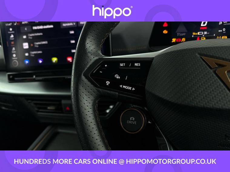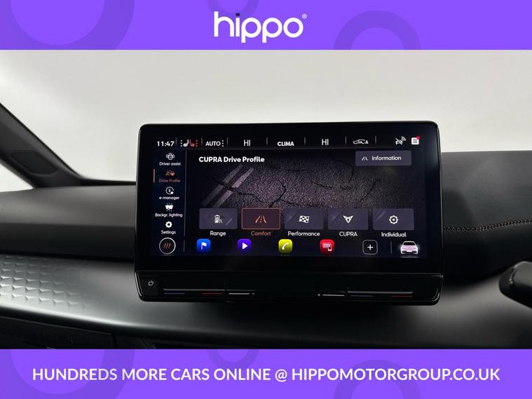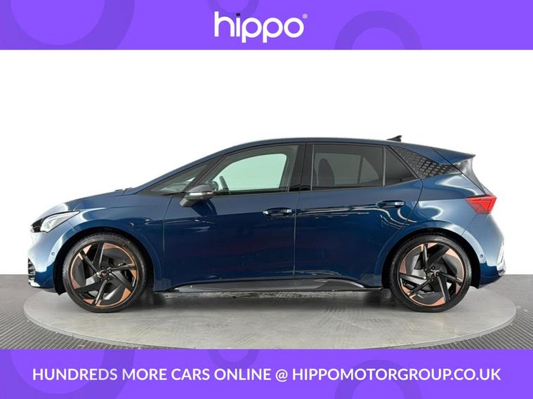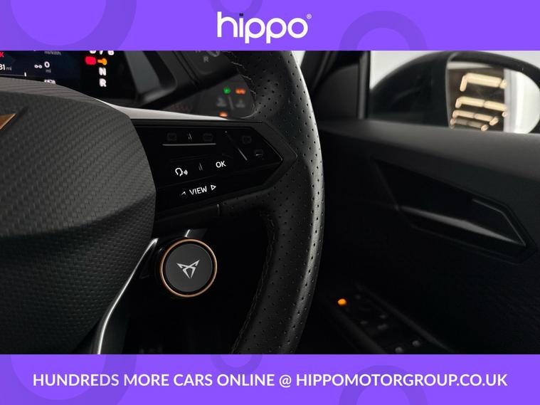 Presenting this CUPRA Born e-Boost 77kWh V3 Hatchback, an all-electric vehicle with just 8, 280 miles on the clock. Powered by a robust 230 PS electric motor paired with automatic transmission, this model offers dynamic performance combined with energy efficiency. The cars exterior is enhanced by striking 20-inch Hurricane machined Aerowheels, which not only add to its visual appeal but also contribute to aerodynamic efficiency. Inside, the vehicle features a four-seat configuration, providing both comfort and practicality. The Climatronic dual-zone air conditioning ensures precise temperature control for all occupants, enhancing every journey no matter the season. Hippo Approved is known for a wide selection of vehicles suited for various needs and budgets. Each car undergoes a rigorous 130-point quality and safety inspection at our state-of-the-art 3 million preparation centre, ensuring your peace of mind. Additionally, we offer tailored finance packages for personal and business use, making it easy to acquire your ideal car.