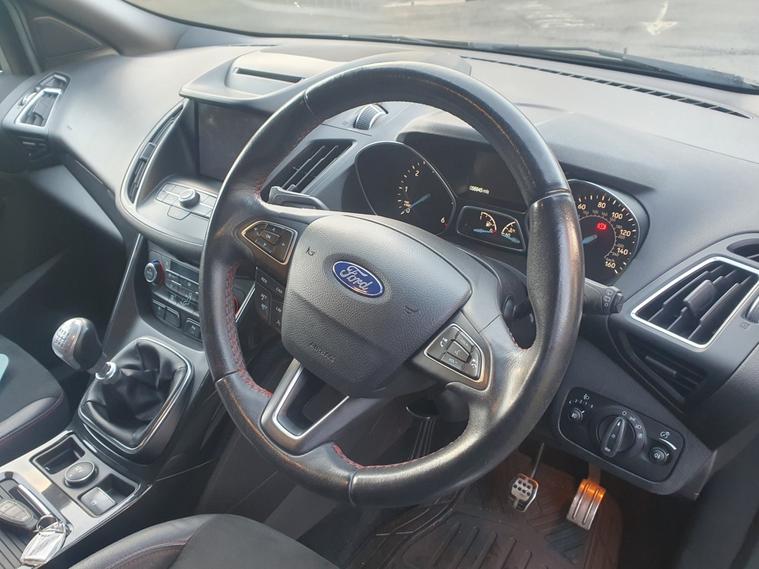 Enhanced active park assist including perpendicular parking pull out assist and flank guard, EPAS, Front parking sensor, Rear parking sensor, SYNC Emergency Assistance, Sports suspension, Auxiliary socket for external device, Remote audio controls on steering wheel, USB connection, Auto dimming rear view mirror, Automatic headlights, Black roof rails, Body styling kit, Electric folding and heated mirrors, Front scuff plate, LED daytime running lights, Power front and rear windows, Quickclear heated windscreen, Rain sensor windscreen wipers, Rear diffuser, Twin exhaust pipes, 60/40 split/folding rear back and cushion, Alloy Foot Pedals, Auxiliary power socket in luggage area, Dinamica/Leather Upholstery, Driver seat lumbar adjustment, Dual electronic automatic temperature control, Isofix system on outer rear seats, Leather steering wheel with red stitching, Memory for drivers seat/door mirrors, Passenger lumbar support, Sports style front seats, ABS/EBD, Driver and passenger airbags, Driver and passenger side airbags, Electric traction assist system, Electronic parking brake, ESP+EBA, Front and rear curtain airbags, Hill start assist, Intelligent Protection System (IPS), Immobiliser, Keyless Start, Remote central locking, Thatcham Cat.1 alarm