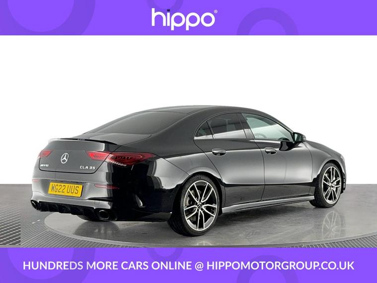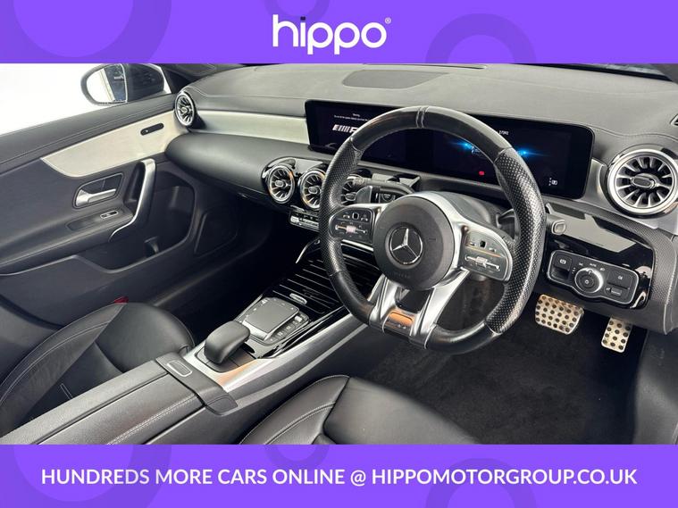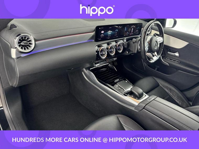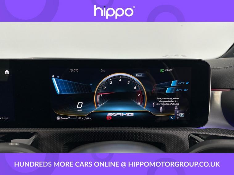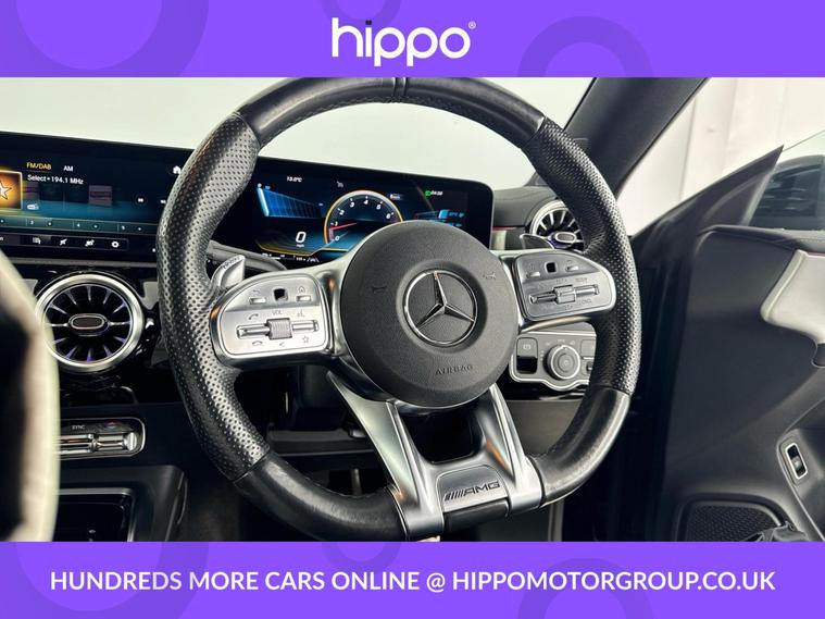 Presenting this Mercedes-Benz CLA 2.0 CLA35 AMG (Premium) Coupe 4dr Petrol 7G-DCT 4MATIC Euro 6, with just 27, 263 miles. This model features 19-inch AMG 5-twin-spoke alloy wheels in high-gloss black with a high-sheen finish and the AMG Night Package for a striking exterior appearance. Step inside to find dual 10.25-inch displays, including a digital instrument cluster and touchscreen media display, offering navigation services, DAB radio, and dual Bluetooth interfaces. The interior also boasts luxury details such as the Leather Package, heated front seats, and a seat comfort package, enhanced by 64-colour ambient lighting and a Nappa leather AMG Performance steering wheel. Enjoy convenience with the KEYLESS-GO Package, privacy glass, and the Light and Sight Package. The THERMOTRONIC two-zone automatic climate control ensures a comfortable environment, while the cruise control with limiter adds ease to long journeys. Parking is simplified with the comprehensive Parking Package. Hippo Approved is known for a wide selection of vehicles suited for various needs and budgets. Each car undergoes a rigorous 130-point quality and safety inspection at our state-of-the-art 3 million preparation centre, ensuring your peace of mind. Additionally, we offer tailored finance packages for personal and business use, making it easy to acquire your ideal car.