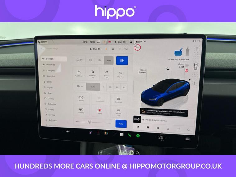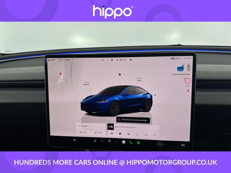 Offered by Hippo Approved, this Tesla Model 3 Saloon 4dr Electric Auto RWD (208 ps) has covered 17, 337 miles and presents a compelling blend of performance, efficiency, and comfort. Fitted with 18-inch Photon alloy wheels, the vehicle is equipped for a smooth and confident drive. The dual-zone climate control and heated steering wheel ensure year-round comfort for all occupants, while a tinted panoramic glass roofincluding ultraviolet and infrared protectionenhances the cabins ambience and comfort. This Model 3 is equipped with advanced features such as adaptive cruise control and a park assist camera, contributing to a confident and convenient driving experience. Connectivity is facilitated through Bluetooth, and entertainment is delivered via a digital radio and the OEM sound system. The integrated navigation system makes every journey straightforward and stress-free. Hippo Approved is known for a wide selection of vehicles suited for various needs and budgets. Each car undergoes a rigorous 130-point quality and safety inspection at our state-of-the-art 3 million preparation centre, ensuring your peace of mind. Additionally, we offer tailored finance packages for personal and business use, making it easy to acquire your ideal car.