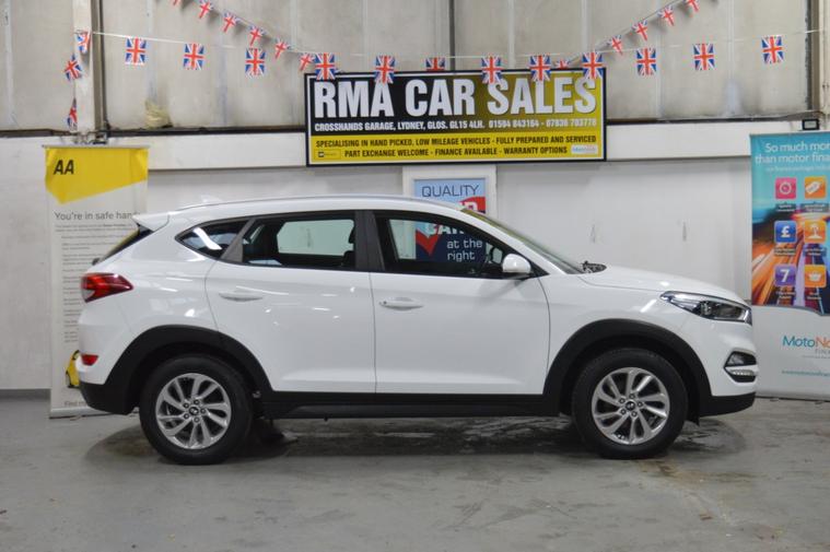 HYUNDAI TUCSON 1.6 GDI BLUEDRIVE SE SUV 5dr PETROL. IN POLAR WHITE WE ARE DELIGHTED TO OFFER FOR SALE THIS LOW MILEAGE, ONE OWNER SUV. IN ALL ROUND SUPERB CONDITION IT COMES WITH A COMPREHENSIVE SERVICE HISTORY TO INCLUDE A SERVICE JUST UNDERTAKEN BY OURSELVES. THE INTERIOR IS SPOTLESS AND THE BODYWORK FREE FROM ANY DINGS OR DENTS, THIS CAR HAS CLEARLY BEEN MAINTAINED TO THE HIGHEST OF STANDARDS BY ITS ONE OWNER FROM NEW. IT COMES WITH COLOUR CODED BUMPERS AND MIRRORS, FRONT FOGS, LED DAYTIME RUNNING LIGHTS, REAR PRIVACY GLASS, REAR PARKING SENSORS, UNMARKED ALLOY WHEELS, CLOTH UPHOLSTERY, MULTI-FUNCTIONAL STEERING WHEEL, BLUETOOTH TELEPHONE CONNECTIVITY AND AUDIO STREAMING, DAB RADIO AND AUX/USB INTERFACE, CRUISE CONTROL, DUAL ZONE CLIMATE CONTROL, AIR CONDITIONING, HEATED SEATS, ELECTRIC WINDOWS AND MIRRORS, AUTO STOP/START, LANE DEPARTURE WARNING, HILL START ASSIST AND DOWNHILL BRAKE CONTROL, REMOTE CENTRAL LOCKING AND 2 x KEYS. AS WE ARE AN AA CARS DEALER THIS VEHICLE COMES WITH A FULL AA HISTORY CHECK AND ALSO 12 MONTHS AA BREAKDOWN COVER. EXTENDED AA WARRANTY AVAILABLE. WE ARE ALSO A MEMBER OF THE AA DEALER PROMISE SCHEME. NEW MOT ISSUED ON PURCHASE. WE PRIDE OURSELVES ON THE PRESENTATION OF OUR VEHICLES WHICH ARE FULLY VALETED AND PREPARED TO THE VERY HIGHEST OF STANDARDS. AS A RESULT WE FIRMLY BELIEVE THAT OUR FORECOURT IS UNRIVALLED AND OUR REPUTATION FOR SELLING PREMIUM USED CARS IS SECOND TO NONE. WALK AROUND VIDEO AND DELIVERY OPTIONS ARE AVAILABLE UPON REQUEST.