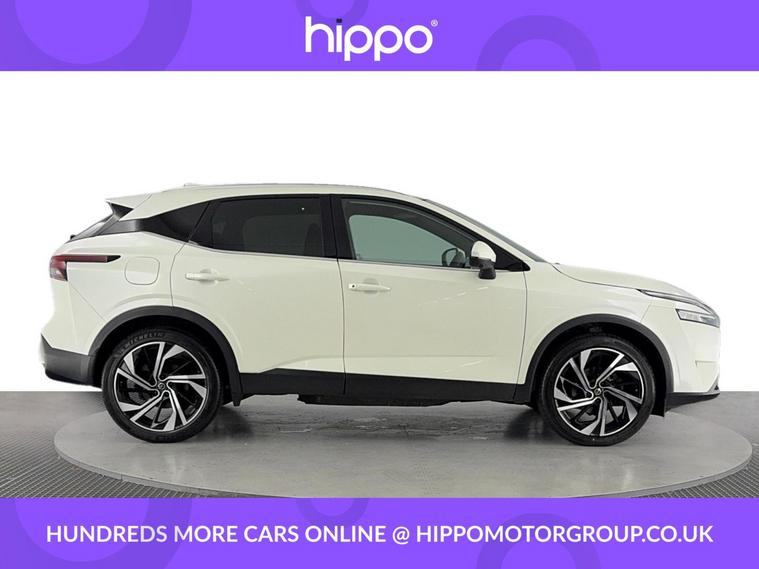 Hippo Approved is known for a wide selection of vehicles suited for various needs and budgets. Each car undergoes a rigorous 130-point quality and safety inspection at our state-of-the-art 3 million preparation centre, ensuring your peace of mind. Additionally, we offer tailored finance packages for personal and business use, making it easy to acquire your ideal car. For sale is a Nissan Qashqai 1.3 DIG-T MHEV Tekna+ SUV, an excellent choice for those seeking a reliable and stylish vehicle. This petrol hybrid model, compliant with Euro 6 standards, has only 6, 961 miles on the clock, offering many more journeys to come. The car features 20-inch alloy wheels and privacy glass for a sleek exterior appearance. Stay connected with Bluetooth and enjoy your favourite tunes via the AM-FM audio system with DAB. The interior includes automatic dual-zone climate control with a pollen filter for your comfort, while the Bose Pack ensures premium sound quality. Navigate with ease using the NissanConnect Navigation system, and park confidently with front and rear parking sensors, as well as a rear view camera. Additional conveniences include a leather steering wheel, multifunctional steering wheel, and intelligent cruise control, making every drive enjoyable and stress-free.
