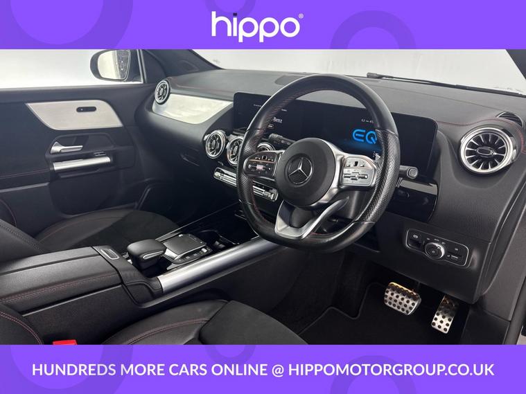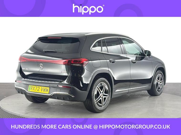 Presenting the Mercedes-Benz EQA 300 66.5kWh AMG Line SUV 5dr Electric Auto 4MATIC, finished in sophisticated Cosmos Black. With 47, 248 miles on the clock and a service carried out at 31, 000 miles, this well-maintained example offers comfort and capability. Enjoy the visual appeal and stability of 18-inch AMG 5-spoke alloy wheels, painted black with a high-sheen finish, which complement the cars striking exterior. The cabin features integrated hard-disc navigation for stress-free journeys, while the 4MATIC all-wheel-drive system provides confident handling in various conditions. This EQA balances performance with efficiency, powered by an electric drivetrain delivering 228 ps for a responsive driving experience. Hippo Approved is known for a wide selection of vehicles suited for various needs and budgets. Each car undergoes a rigorous 130-point quality and safety inspection at our state-of-the-art 3 million preparation centre, ensuring your peace of mind. Additionally, we offer tailored finance packages for personal and business use, making it easy to acquire your ideal car.