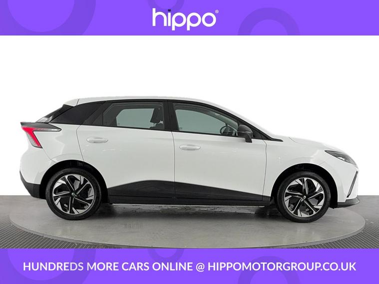 Presenting the MG MG4 64kWh SE Long Range Hatchback 5dr Electric Auto, offering an impressive balance of performance and practicality with only 254 miles on the clock. Powered by a 203ps electric motor, this model features 17-inch alloy wheels with low wind resistance aero covers, designed to enhance efficiency. The interior is equipped for comfort and convenience, including a 4-speaker audio system, climate control, and a leather steering wheel. Navigation is straightforward with the integrated satellite navigation system, and your entertainment needs are met with DAB+ radio. Driving assistance is provided by adaptive cruise control and rear parking sensors, making every journey safer and more relaxed. Tinted glass adds a touch of privacy and style to the hatchbacks sleek profile. Hippo Approved is known for a wide selection of vehicles suited for various needs and budgets. Each car undergoes a rigorous 130-point quality and safety inspection at our state-of-the-art 3 million preparation centre, ensuring your peace of mind. Additionally, we offer tailored finance packages for personal and business use, making it easy to acquire your ideal car.