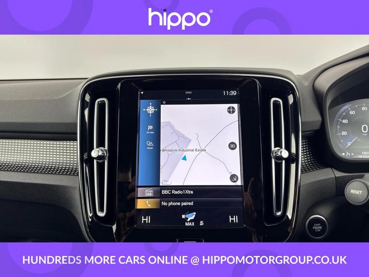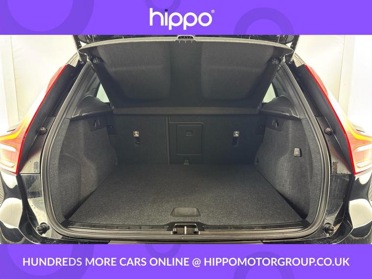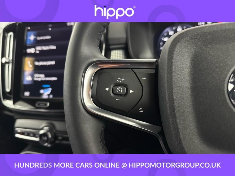 Presenting a Volvo XC40 2.0 B4 MHEV R-Design SUV 5dr Petrol Hybrid Auto Euro 6 (s/s) with 197ps and just 33, 036 miles. Finished in striking Black Stone, this well-specified example features 18-inch 5 double spoke diamond-cut matt black alloy wheels and distinctive dark tinted rear windows for enhanced privacy. For everyday convenience, it comes equipped with Park Assist, both front and rear, making parking effortless. The interior delivers comfort through 2-zone electronic climate control, rear air vents, and sports tailored steering wheel. Stay connected and entertained with Bluetooth handsfree, DAB digital radio, and the Sensus Navigation system. Additional refinements include a leather gear knob, cruise control for relaxed motorway driving, and practical touches throughout. At Hippo Approved, we offer a wide selection of vehicles to suit varying needs and budgets. Each car undergoes a rigorous 130-point quality and safety inspection at our state-of-the-art 3 million preparation centre, ensuring your peace of mind. Additionally, we provide tailored finance packages for personal and business use, making it easy to acquire your ideal car.