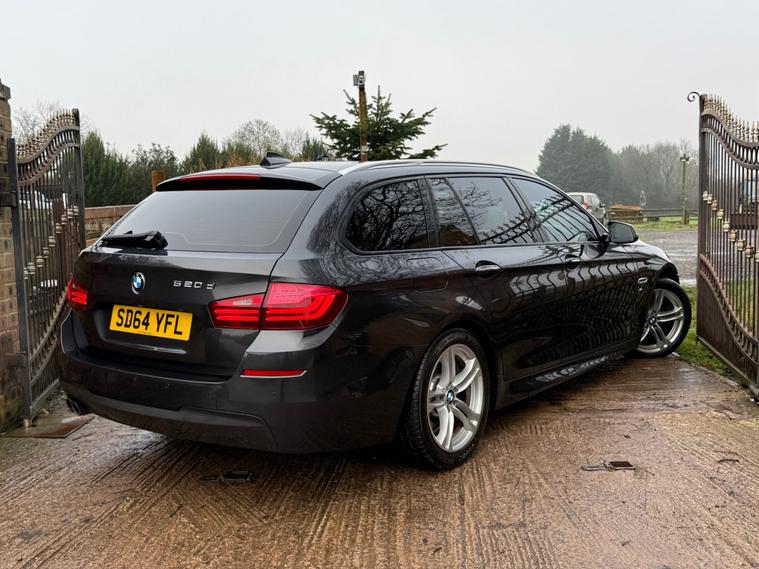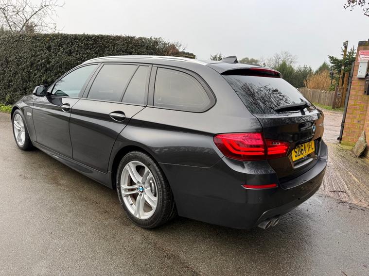 We are delighted to present to you this lovely example of a 2014 (64) BMW 5 Series 2.0 520D 190 M Sport Touring Step Auto finished in the lovely Sophisto Grey metallic with full black leather interior. This BMW comes with full service history, (BMW Main Dealer Up to 80k), 2 keys, 1 Former Keeper, A fresh 12 months M.O.T included, Satellite navigation, Heated seats, Power tailgate, 18inch alloys, Front and rear parking sensors, Cruise control, Electric seats, Xenon headlights, AA approved garage, Free 12 months AA breakdown cover, HPI clear, Part ex welcome, Open 7 days a week (SUNDAYS APPOINTMENT ONLY)