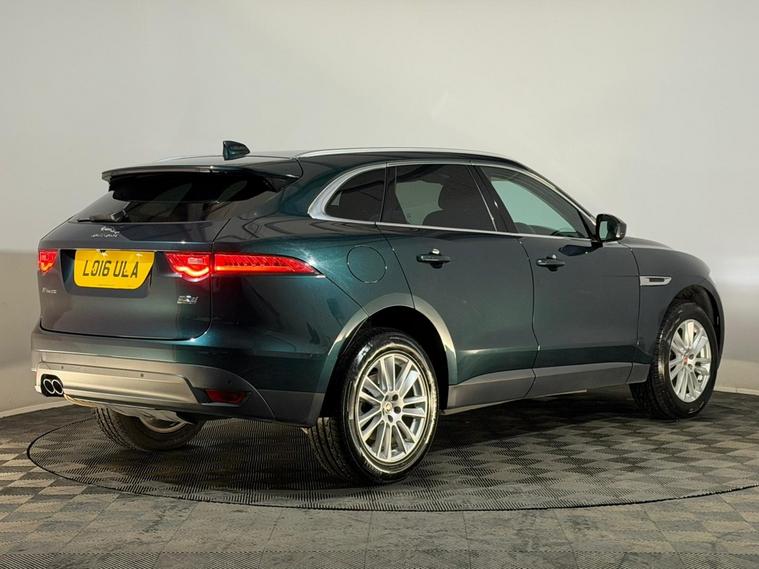 2016 Jaguar F-Pace Portfolio 2.0 Diesel Automatic AWD SUV in Stunning Green service history serviced in 2025 fully loaded panoramic glass roof Meridian premium sound digital speedometer adaptive cruise heated steering wheel reversing camera full black leather with heated electric seats keyless go 180 brake horsepower 53 combined miles per gallon £195 tax EURO 6 ULEZ compliant 2 keys and a long MOT until August 2026. Top spec Portfolio with panoramic glass roof Meridian premium sound digital dash adaptive cruise lane assist heated steering wheel reversing camera sat nav and smooth 8 speed auto box with paddle shift. Serviced in 2025. Drives superb. The Portfolio trim is fully loaded with 19 inch alloy wheels bi xenon headlights LED daytime running lights headlight washers front and rear parking sensors reversing camera keyless go stop start technology air conditioning digital dual zone climate control and cruise control for a premium exterior. Features like full black leather interior front 3 stage heated seats front electric powered seats and ISOFIX anchor points provide premium comfort and safety. Entertainment and connectivity are exceptional with a touchscreen digital display Jaguar CD DAB AM FM stereo system Meridian premium sound system satellite navigation system voice control Bluetooth audio and telephone SIM card input HDMI input and USB audio and charging input. Additional conveniences include front and rear electric windows front and rear heated screen automatic lights automatic wipers auto tinting rear view mirror electric powerfold door mirrors leather arm rest cup holders 12 volt battery points adjustable steering column multifunctional steering wheel adjustable terrain settings electric park brake and automatic tiptronic gearbox with paddle shift and sports mode for a smooth and engaging drive. With serviced in 2025 this F-Pace offers outstanding value for a high spec SUV. As an AA Approved Dealer Noahs Automotive Ltd ensures confidence with HPI clear vehicles competitive pricing checked daily across the UK market and nationwide delivery within 24 to 72 hours. Part exchanges are welcomed with fast fair valuations and extended warranty options are available