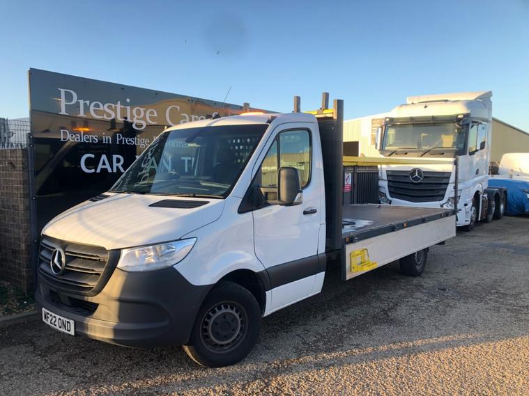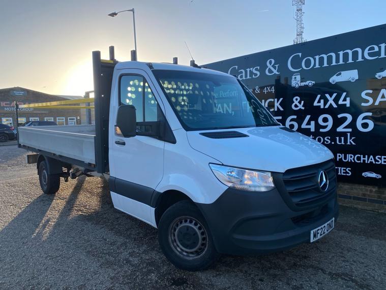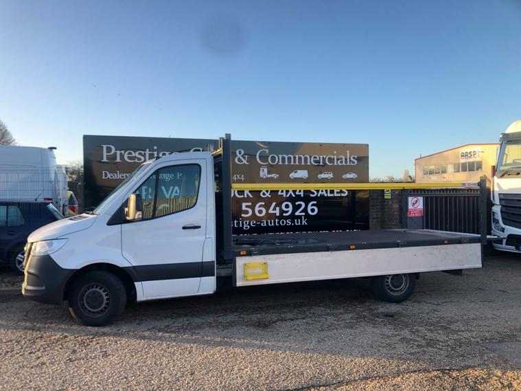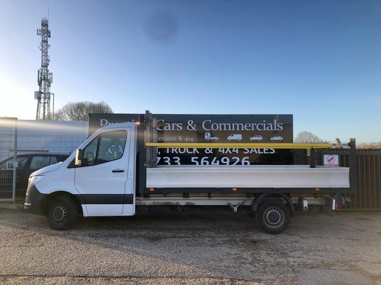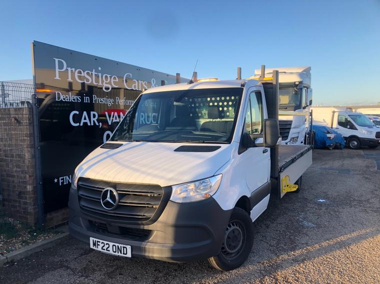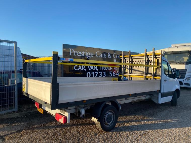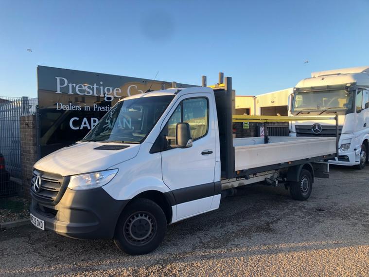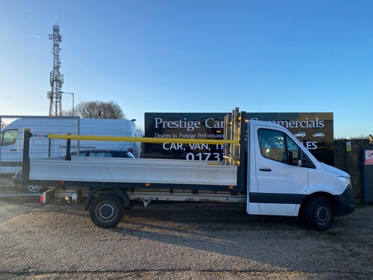 2022 9 SPEED AUTOMATIC MERCEDES SPRINTER COVERED 154292 MILES. 3.5 TONNE LWB LEGENDARY SPRINTER L3 LONG WHEEL BASE PICK UP TRUCK DROPSIDE LORRY. 2.0 CDI 150 BHP TURBO DIESEL WITH 9G-TRONIC AUTOMATIC GEARBOX. 1 PLC COMPANY OWNER FROM NEW WITH FULL MERCEDES MAIN DEALER SERVICE HISTORY. LAST SERVICED AT 142818 MILES ON 27/07/25. DRIVES BEAUTIFULLY. VERY CLEAN INSIDE OUT. TRULY BEEN LOOKED AFTER, NOT USUAL HARD USED COMPANY TRUCK. BEEN OWNED BY SMITH BROS STORES ALL ITS LIFE SO NOT DONE ANY HARD WORK, ONLY BEEN MOVING PLASTIC PIPES AROUND. CURRENT MOT VALID TILL 28/02/2026, FULL 12 MONTHS MOT UPON SALE FOR COMPLETE PEACE OF MIND ALONG WITH SERVICE USING GENUINE MERCEDES FILTERS AND OIL. 6 MONTHS NATIONWIDE PARTS AND LABOUR WARRANTY. RARE AIR CON CLIMATE CONTROL. DEATCHABLE REAR FALL ARREST SAFETY BARS. AMBER FLASHING ROOF BEACON. INGIMEX LIGHTWEIGHT ALUMINIUM BODY AND DROPSIDES WITH MARINE PLY FLOORING. BODY SIZE IS 6 FEET 5 INCHES / 1.95 METRE WIDE X 14 FEET 1 INCH / 4.3 METRE LONG. FULL SIZE SPARE WHEEL. AUTOMATIC LIGHTS AND WIPERS. REAR BULKHEAD LOAD GUARD/CAGE WITH ADJUSTABLE UPRIGHTS. ACTIVE BRAKE ASSIST. MERCEDES EMERGENCY CALL SYSTEM. CRUISE CONTROL. APPLE ANDROID SMARTPHONE INTEGRATION. APPS CONNECT. BLUETOOTH TELEPHONE+AUDIO INTEGRATION. USB AUX IN MUSIC INTERFACE. DAYTIME RUNNING LIGHTS. ADAPTIVE BRAKE LIGHTS. STANDARD VAN ROAD TAX BAND 12 MONTHS PRICED 345 POUNDS. 3500 KG GROSS VEHICLE WEIGHT. 5500 KG TRAIN WEIGHT. 2241KG UNLADEN WEIGHT. 1259 KG PAYLOAD CAPACITY. 2000KG TRAILER PULL CAPACITY WHEN FULLY LOADED. SUPERB ECONOMY, BEST IN CLASS. HILL START ASSIST. CROSSWIND ASSIST. OVERHEAD STORAGE SHELVING TO CAB. UNDERSEAT STORAGE. 3 SEATER CAB. CUP HOLDERS. SIDE MARKER LIGHTS. Bluetooth connection, Cruise control, PAS, Service indicator, Steering wheel mounted controls, Trip computer, Auxiliary input socket, Mobile phone App interface, OEM sound system, USB/iPod interface, Front electric windows, Front head restraints, Solid Paint, ABS, Drivers airbag, ESP, Traction control, Alarm, Immobiliser, Remote central locking, Cloth seat trim. WIDE SELECTION OF MERCEDES SPRINTERS IN STOCK NOW. CHOICE OF HAND PICKED QUALITY USED VANS IN STOCK NOW. CHOICE OF MERCEDES SPRINTERS ALWAYS IN STOCK. CHOICE OF PANEL VANS, DROPSIDE PICK UPS, TIPPERS, LUTONS ALL IN STOCK NOW
