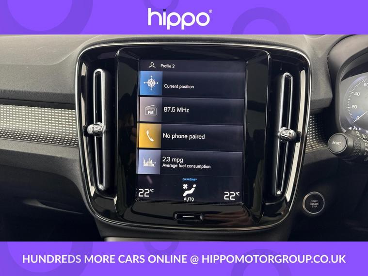 Hippo Approved is known for a wide selection of vehicles suited for various needs and budgets. Each car undergoes a rigorous 130-point quality and safety inspection at our state-of-the-art 3 million preparation centre, ensuring your peace of mind. Additionally, we offer tailored finance packages for personal and business use, making it easy to acquire your ideal car. This Volvo XC40 1.5 T3 R-Design SUV offers an engaging driving experience with its stylish design and efficient petrol engine. With 37, 456 miles on the clock, it has been well-maintained, boasting three services, the most recent completed on 31st October 2024 at 28, 815 miles. The vehicle's exterior, finished in a sleek Black Stone, is complemented by 18-inch Alloy Wheels in a striking 5 Double Spoke Diamond Cut Matt Black finish. The interior is equally refined, featuring Leather-Nubuck in Charcoal. Enjoy the comfort of the Power Glass Tilt and Slide Panoramic Sunroof with Sun Curtain and 2-Zone Electronic Climate Control with Rear Air Vents. Modern connectivity is at your fingertips with the Bluetooth Handsfree System and Sensus Navigation, accompanied by the crystal-clear sound of DAB Radio. Safety and convenience are enhanced with Park Assist, Cruise Control, and Rear Park Assist, ensuring a stress-free journey every time you drive.