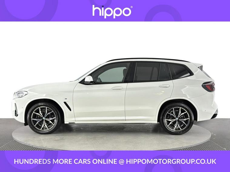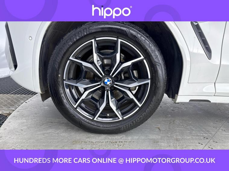 Presenting this BMW X3 2.0 20i MHT M Sport SUV, finished in Alpine White with striking 19-inch 887M M Y-Spoke Midnight Grey alloy wheels. This model has covered 37, 867 miles and comes with a full M Sport Package, adding a dynamic edge to its appearance and performance. The vehicle benefits from a part-electrified hybrid system for efficient petrol driving and boasts BMWs xDrive all-wheel drive for enhanced handling. Inside, you'll find modern conveniences including Cruise Control for relaxed motorway journeys, Parking Assistant, and a Reversing Assist Camera to make manoeuvring and parking simple. The vehicle complies with Euro 6 emissions standards and features a smooth automatic gearbox for a comfortable drive. It has a detailed service history, with two completed services, the most recent at 33, 000 miles. Hippo Approved is known for a wide selection of vehicles suited for various needs and budgets. Each car undergoes a rigorous 130-point quality and safety inspection at our state-of-the-art 3 million preparation centre, ensuring your peace of mind. Additionally, we offer tailored finance packages for personal and business use, making it easy to acquire your ideal car.