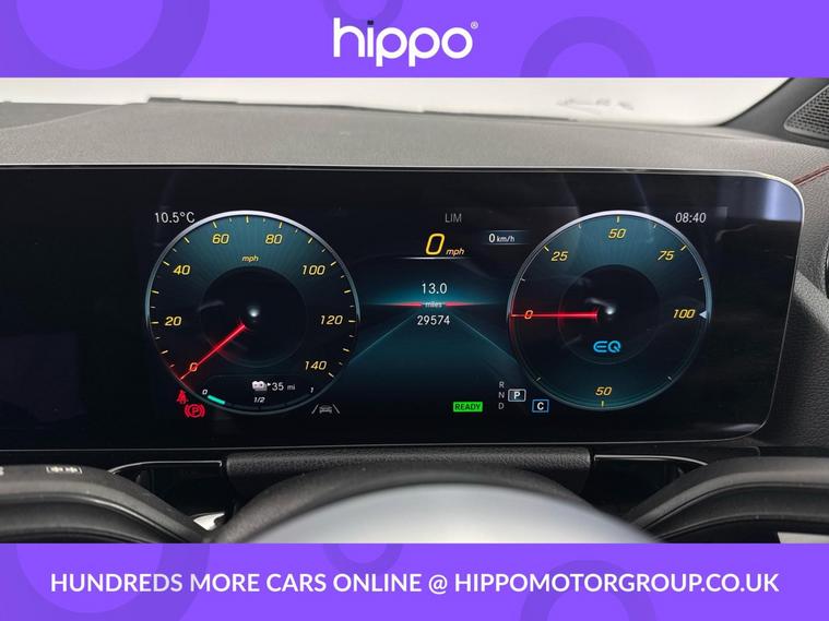 Presenting this Mercedes-Benz EQA 250 66.5kWh AMG Line (Premium) SUV, an all-electric automatic vehicle with 190ps, finished with 19in AMG twin-spoke alloy wheels and 29, 570 miles recorded. The spacious interior is enhanced by a 10-inch digital instrument cluster and ambient lighting with a choice of 64 colours, while the panoramic electric glass sunroof adds to the sense of light and space. Comfort features include heated front seats, the Seat Comfort Package, and THERMOTRONIC automatic climate control. For those who appreciate convenience and entertainment, the vehicle offers DAB digital radio, hard-disc navigation with EQ Navigation Services, and the Mercedes-Benz 225W Advanced Sound System. Practicality is further supported by cruise control, an interior lighting package, parking damage and theft notifications, and heat-insulating dark-tinted glass. The multifunction sports Nappa leather steering wheel completes the interiors premium feel. Hippo Approved is known for a wide selection of vehicles suited for various needs and budgets. Each car undergoes a rigorous 130-point quality and safety inspection at our state-of-the-art 3 million preparation centre, ensuring your peace of mind. Additionally, we offer tailored finance packages for personal and business use, making it easy to acquire your ideal car.